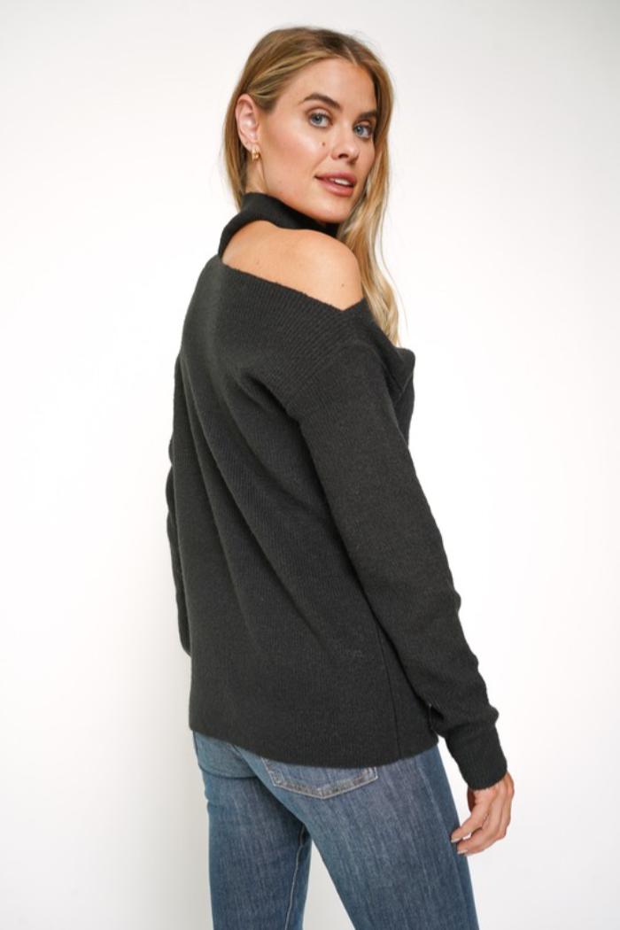 This sweater features - Cutout One Shoulder - Mock TurtleNeck Sweater - Long sleeve - Fits true to size