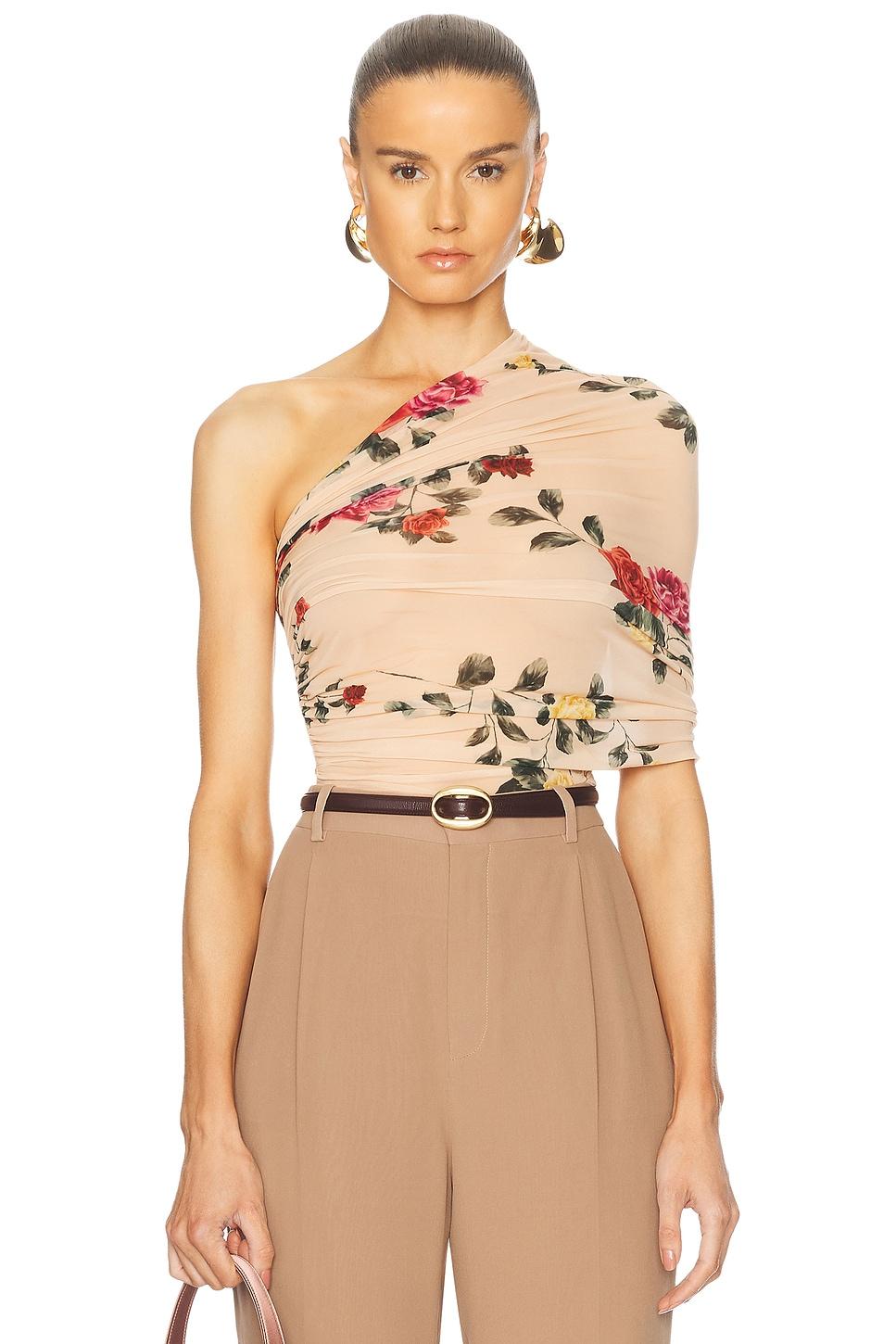 top92% cupro, 8% elastane / Made in Poland / Dry clean only / Hidden side zipper closure / One-shoulder styling / Mesh fabric / Garment is made with a semi-sheer fabric, undergarments can show through / Our Style No. MAGF-WS97 / Manufacturer Style No. 252425 / Model is wearing size 36.