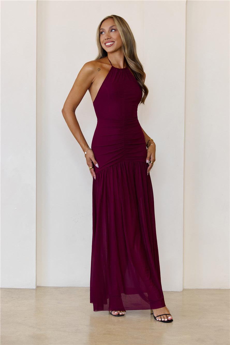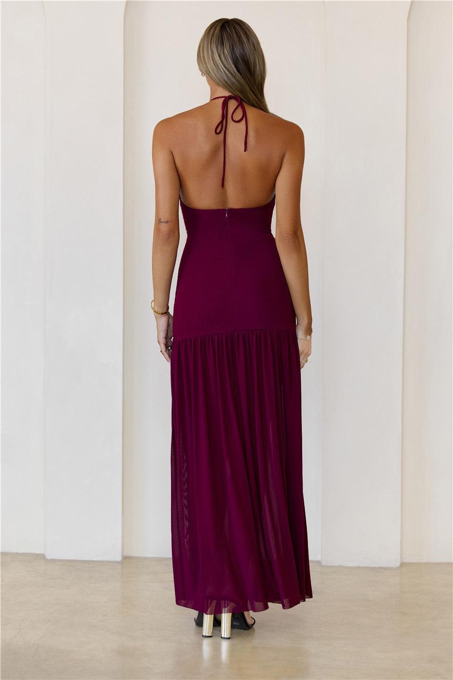 One To Remember Halter Maxi Dress Wine