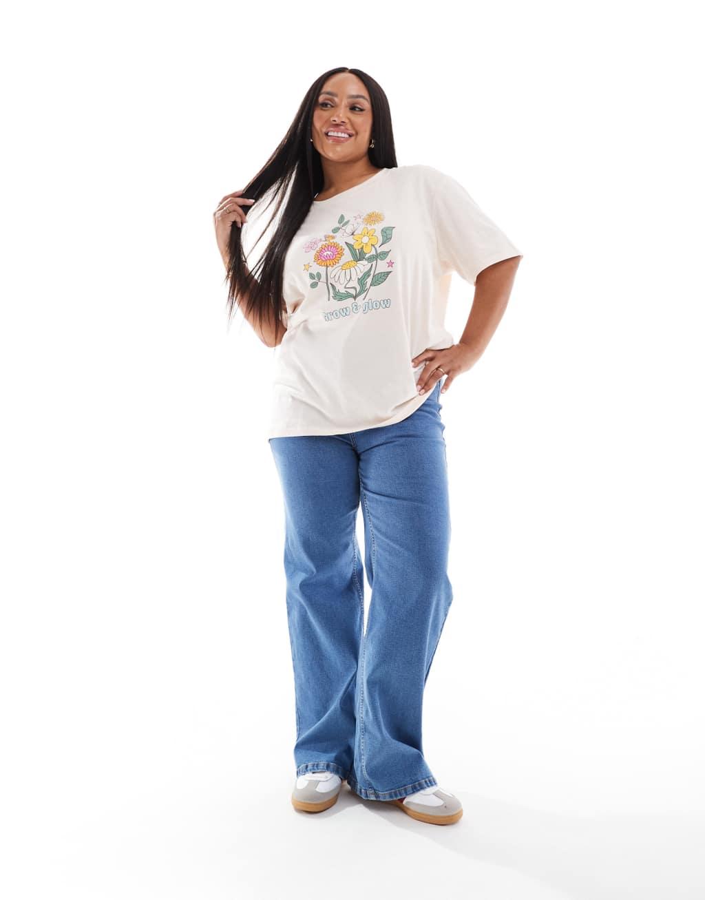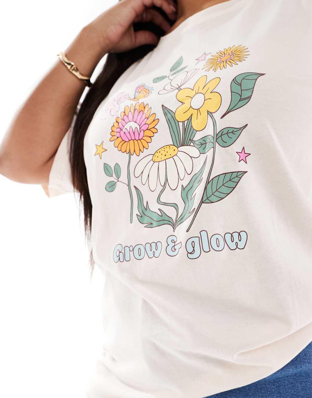 ONLY Curve Grow & Glow print oversized T-shirt in light pink