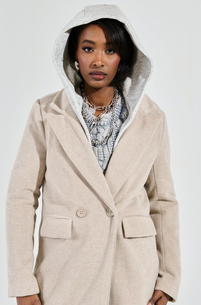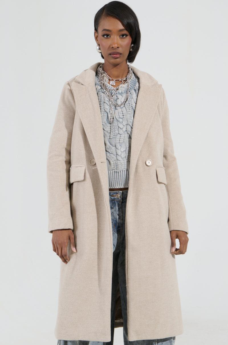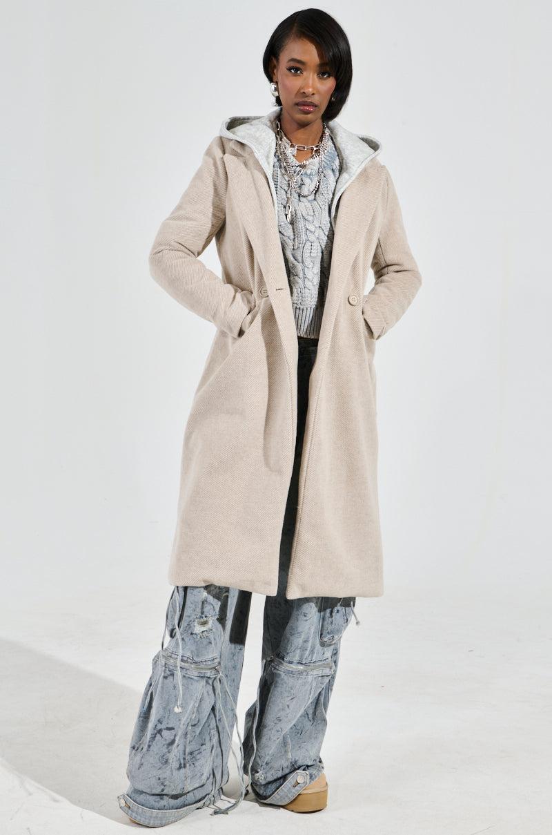 It’s giving quiet luxury. The AKIRA Label Only One Layered Trench is a chicly minimalist piece crafted from a soft, wool-inspired fabrication. It features an oversized, longline silhouette, a notch lapel collar, long sleeves, waist pockets with flap top closures, and a layered, contrasting secondary collar and detachable hood. It’s complete with a silky, satin-lined interior and a double-breasted, single-button front closure. Style with trousers, a scarf, and a baseball cap for an effortlessly trendy ensemble. - Main: 100% Polyester, Lining: 100% Polyester- No Stretch- Imported (all measurements approximate from size small)- 42.5” Shoulder to Hem- 15” Shoulder to Shoulder- 24” Sleeves- Model is 5’8” and wearing a size smallProduct ID: 433455 (all measurements approximate from size 1X)- 43.5” Shoulder to Hem- 16” Shoulder to Shoulder- 26” SleevesProduct ID: 433459