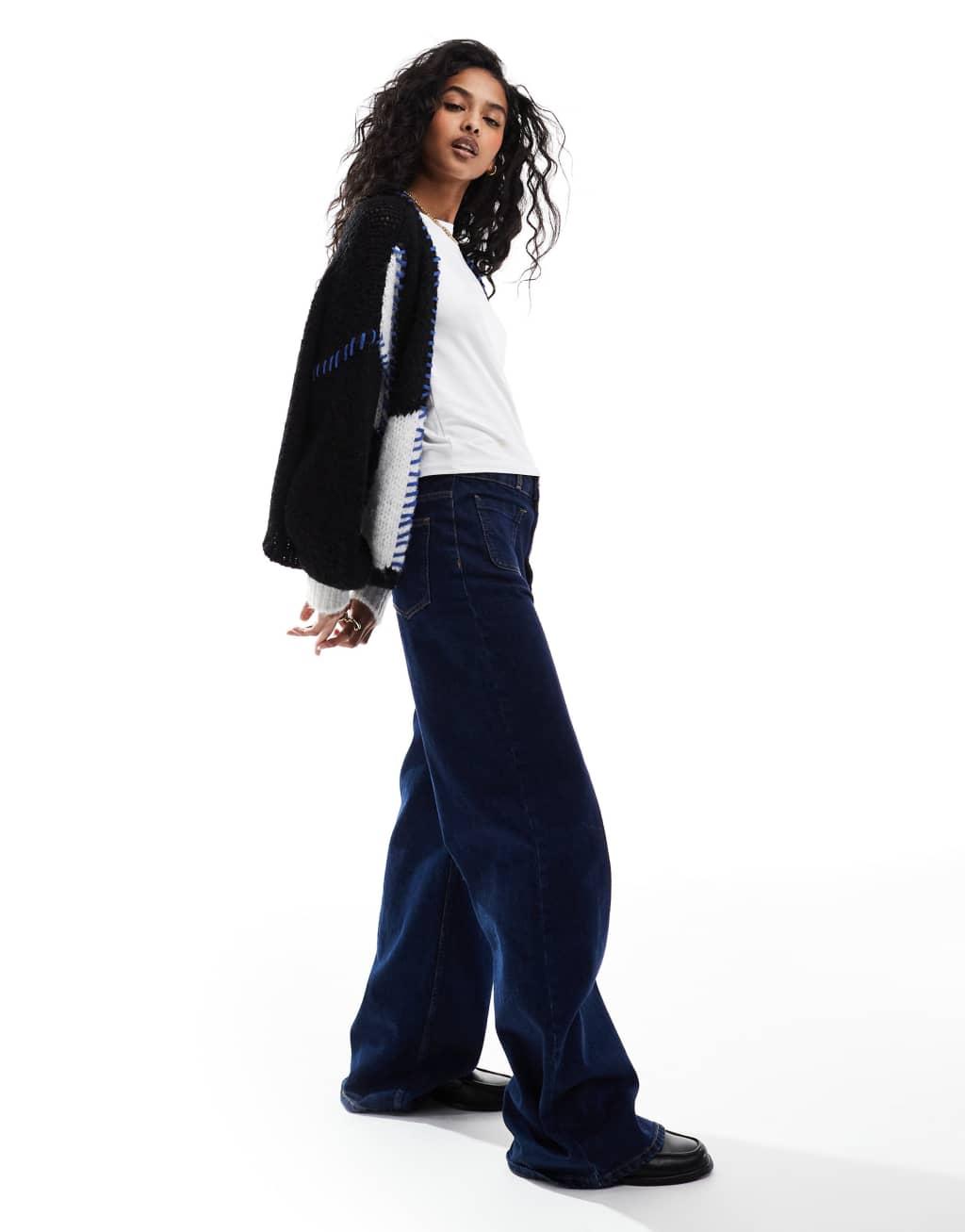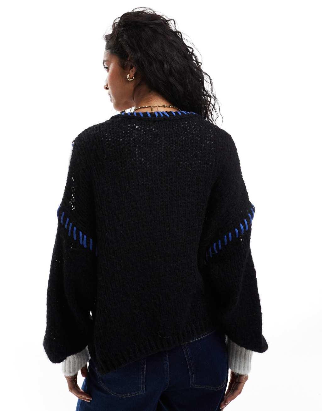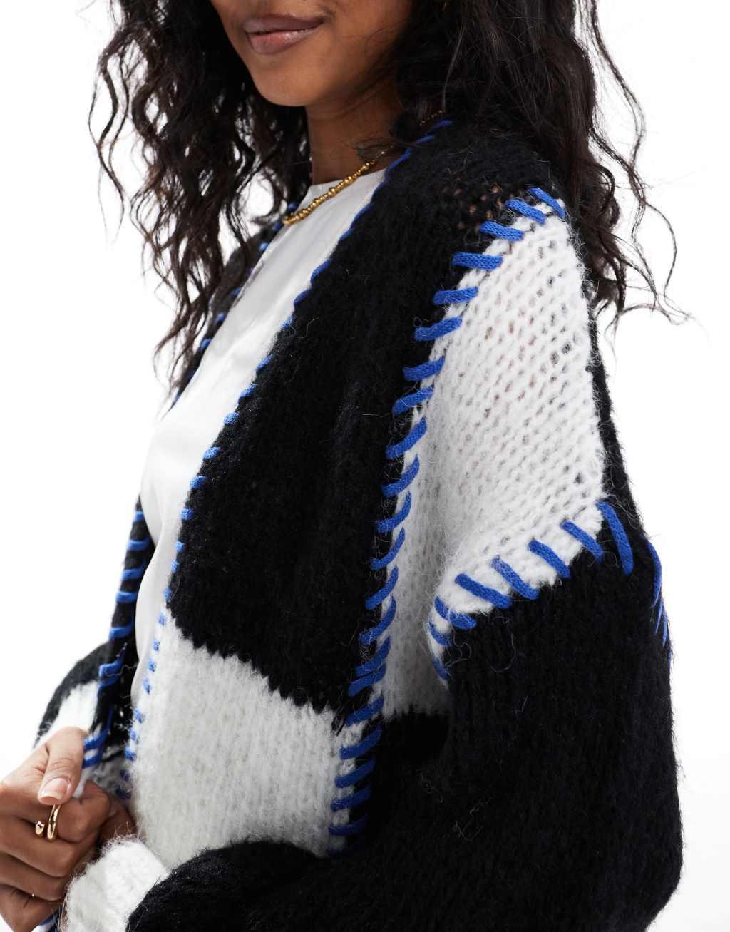 ONLY open knit cardigan in black and white with contrast stitch