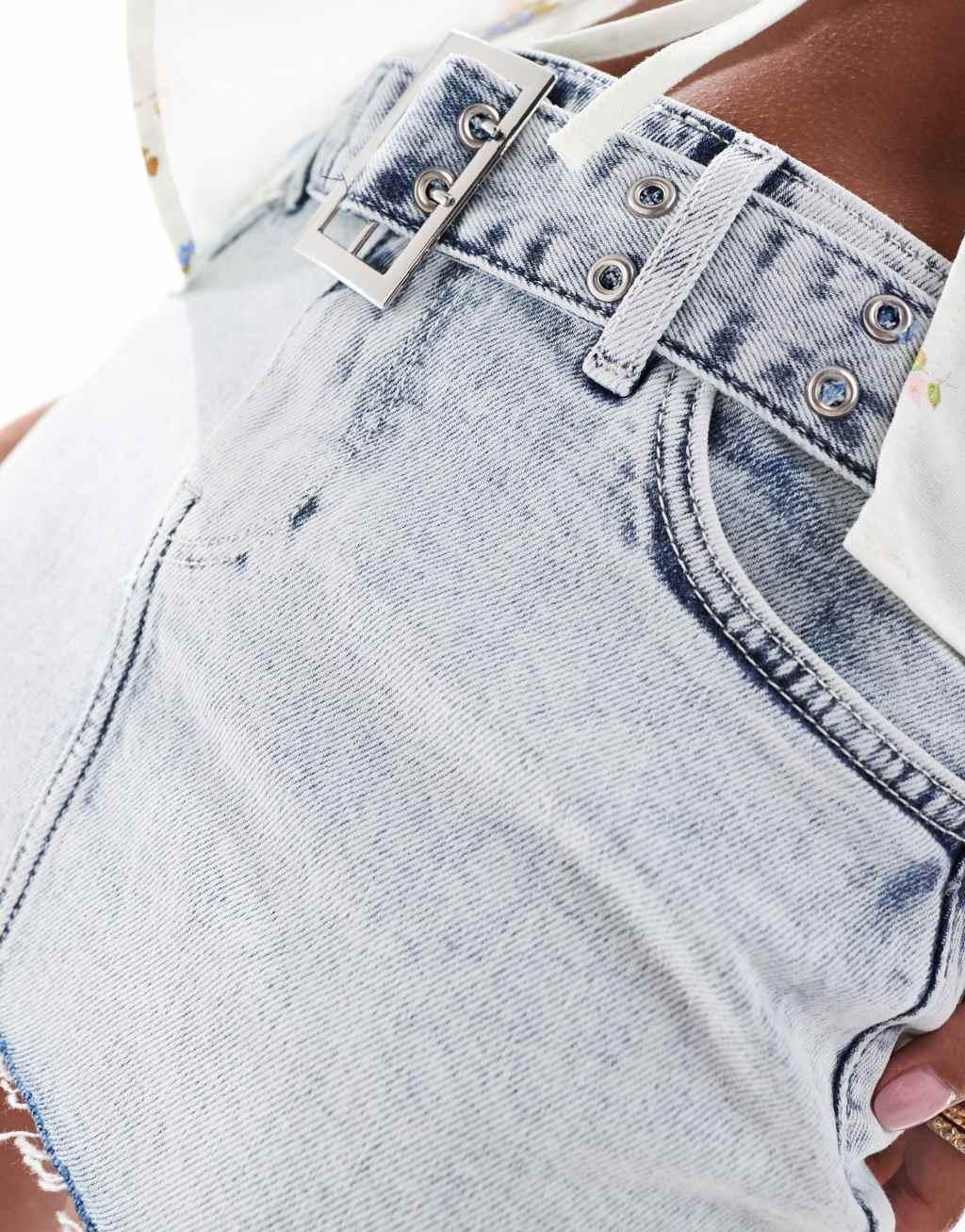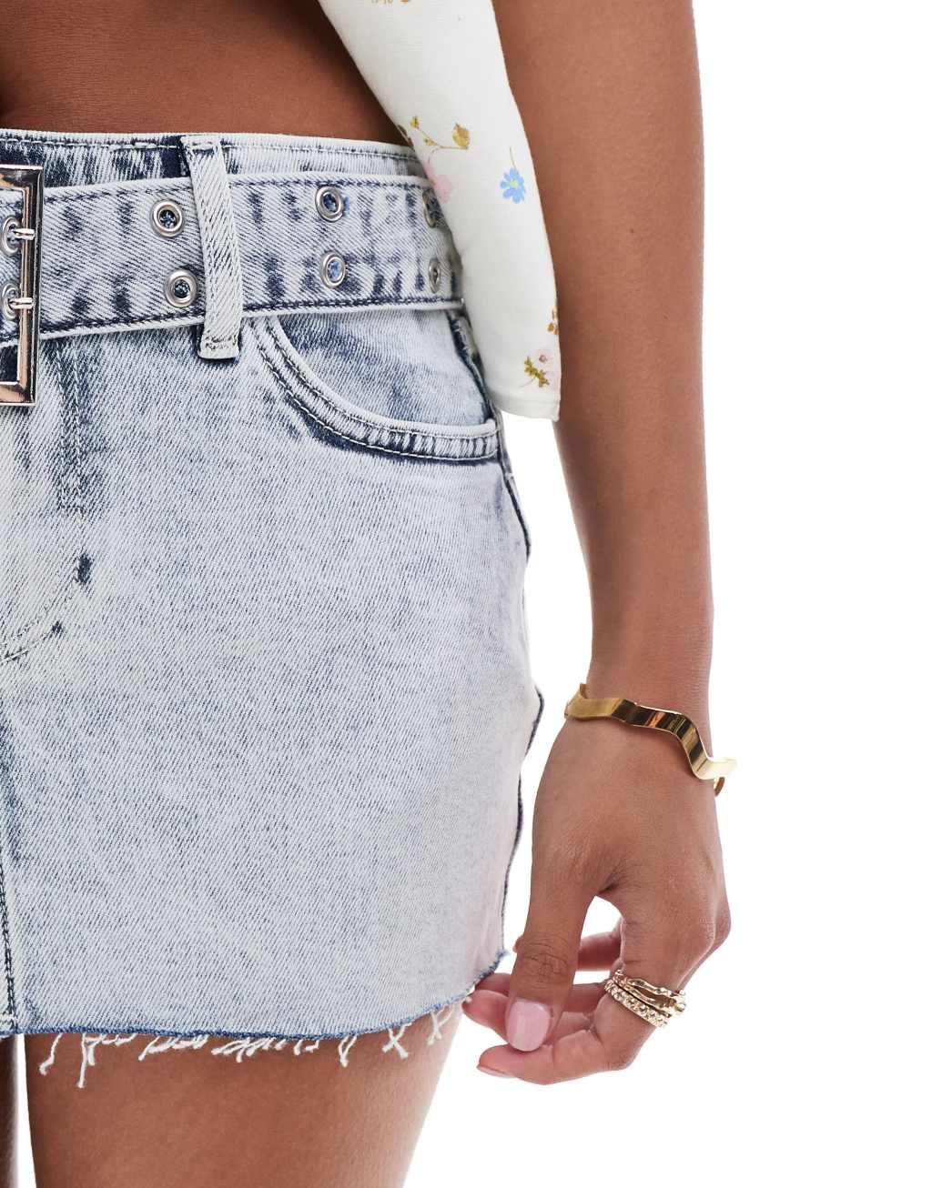 ONLY Petite mini belt denim skirt in light acid wash