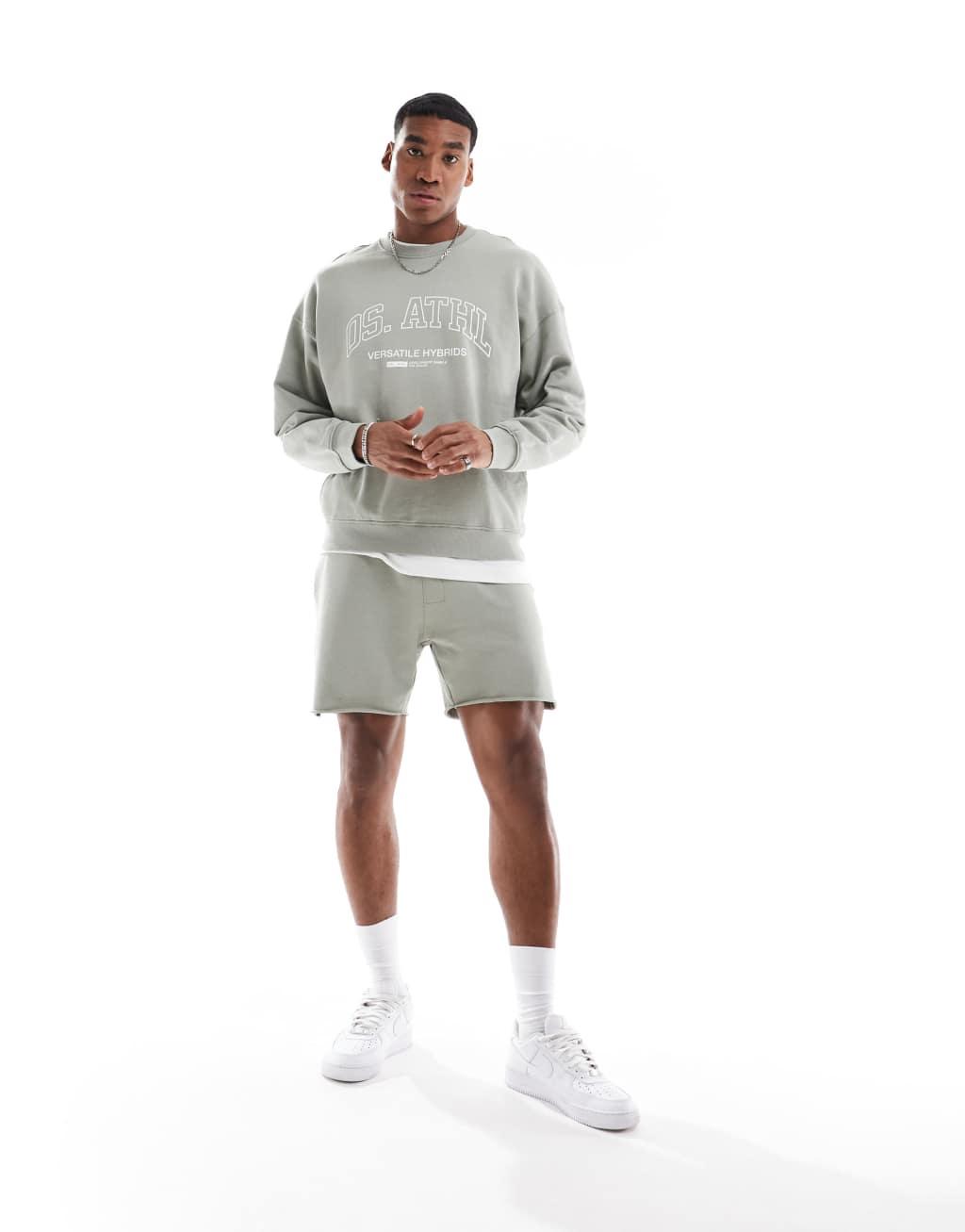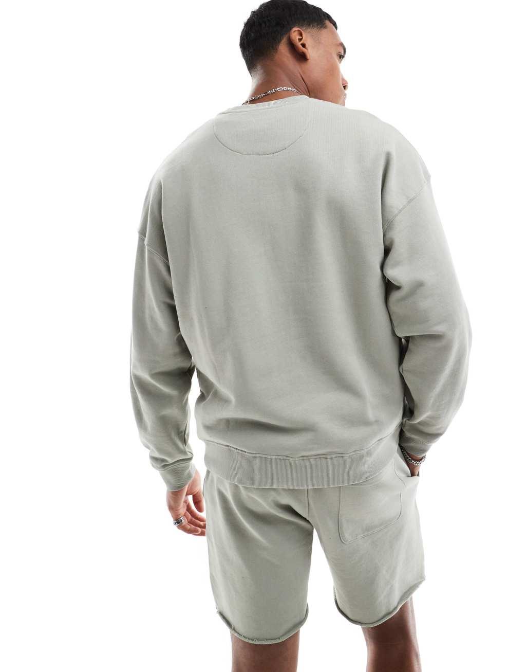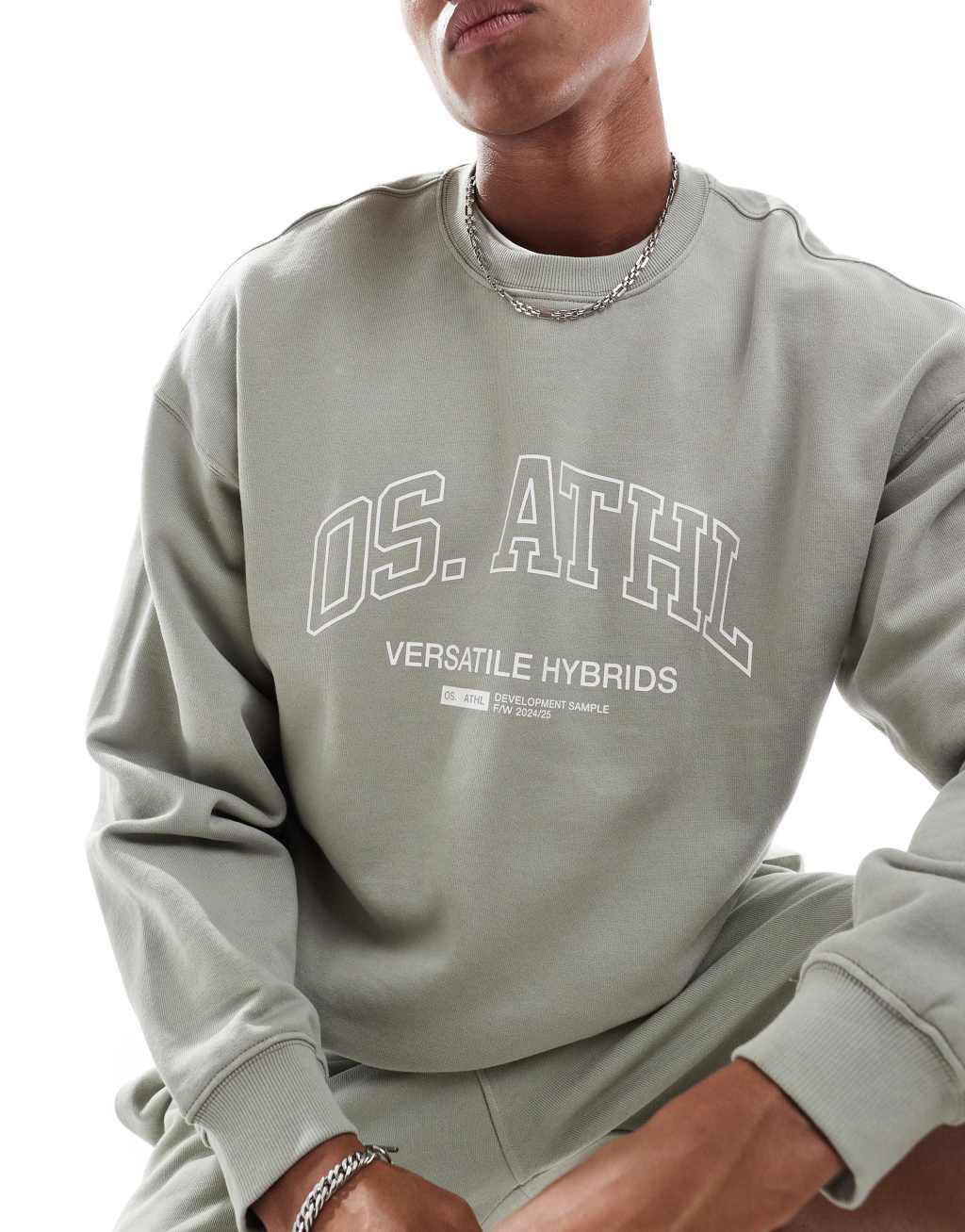 ONLY & SONS crew neck sweater with athletic print in sage - part of a set