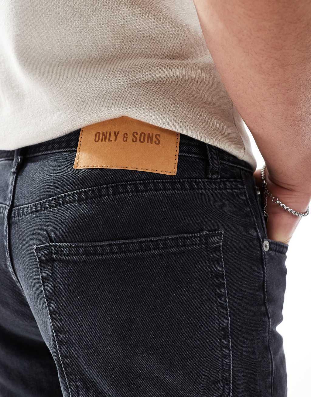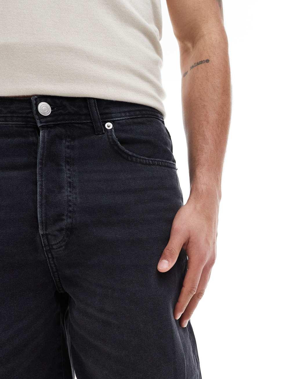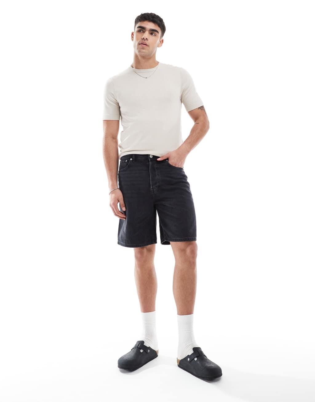 Only & Sons loose fit denim short in washed black