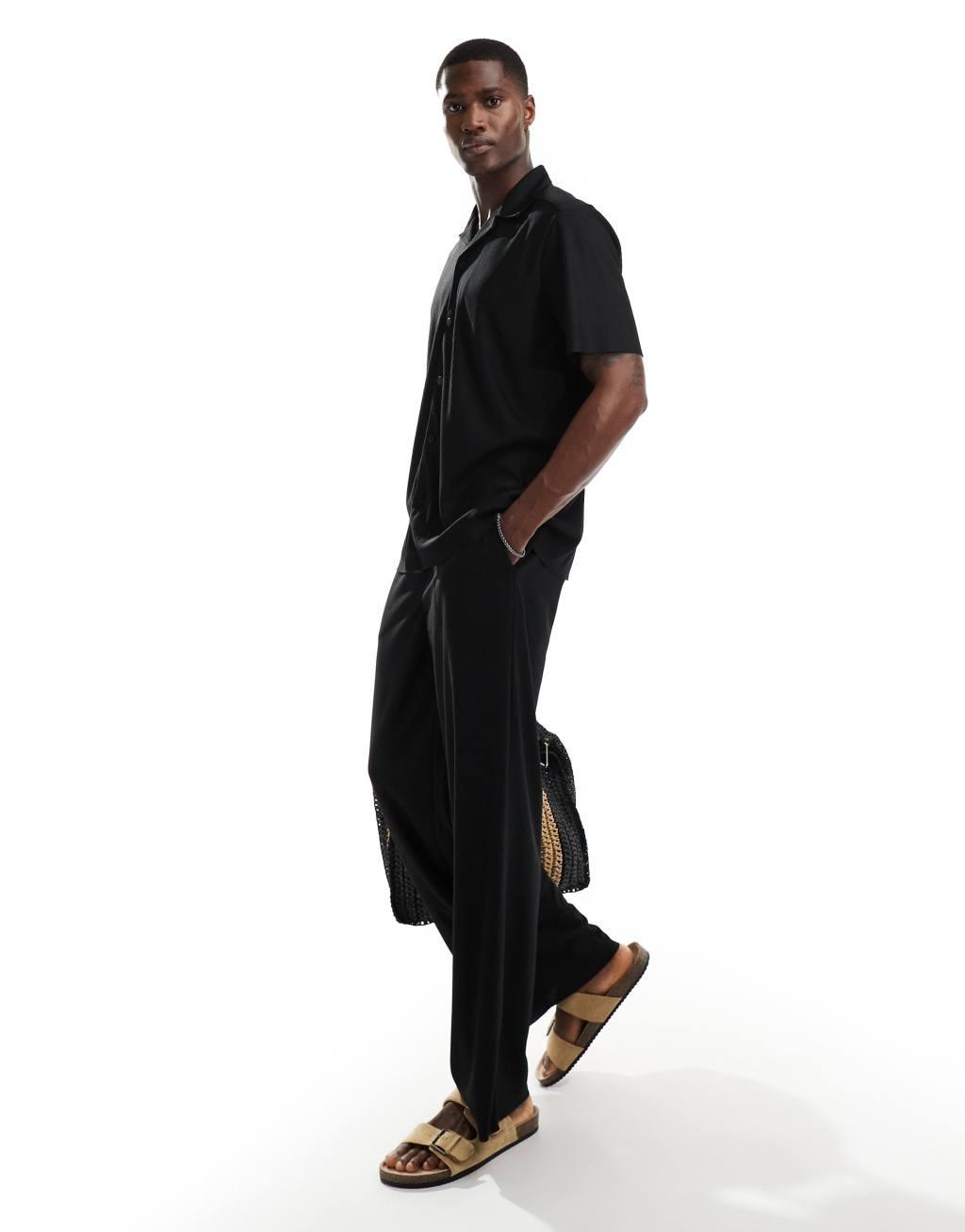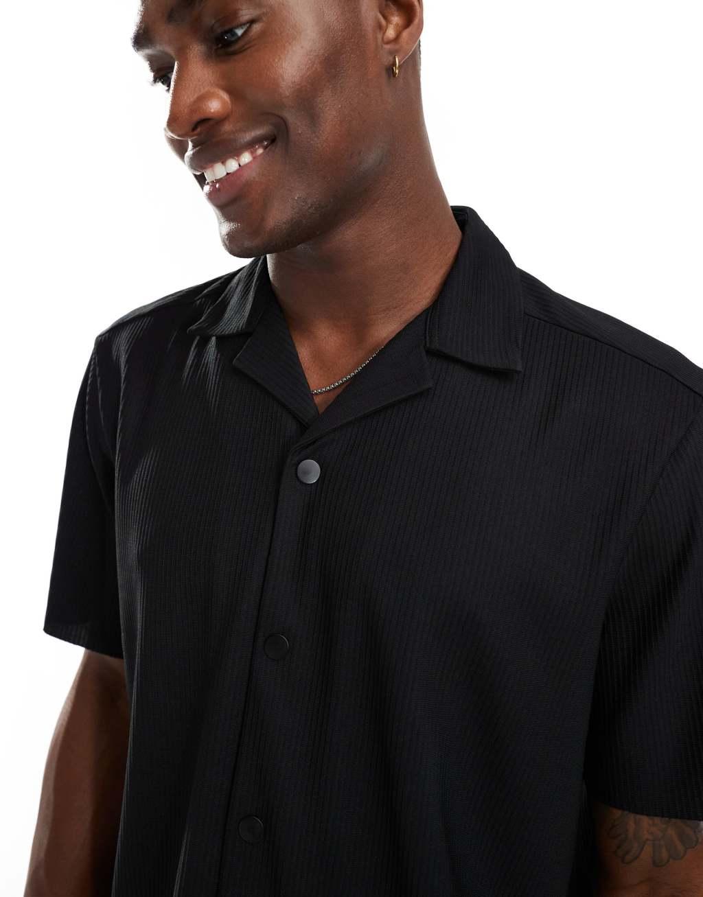 ONLY & SONS plisse revere collar shirt in black - part of a set