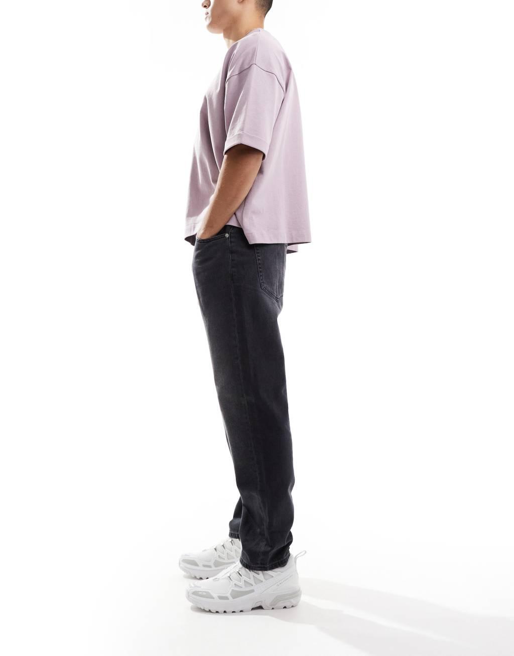 ONLY & SONS Yoke tapered fit jeans in washed black