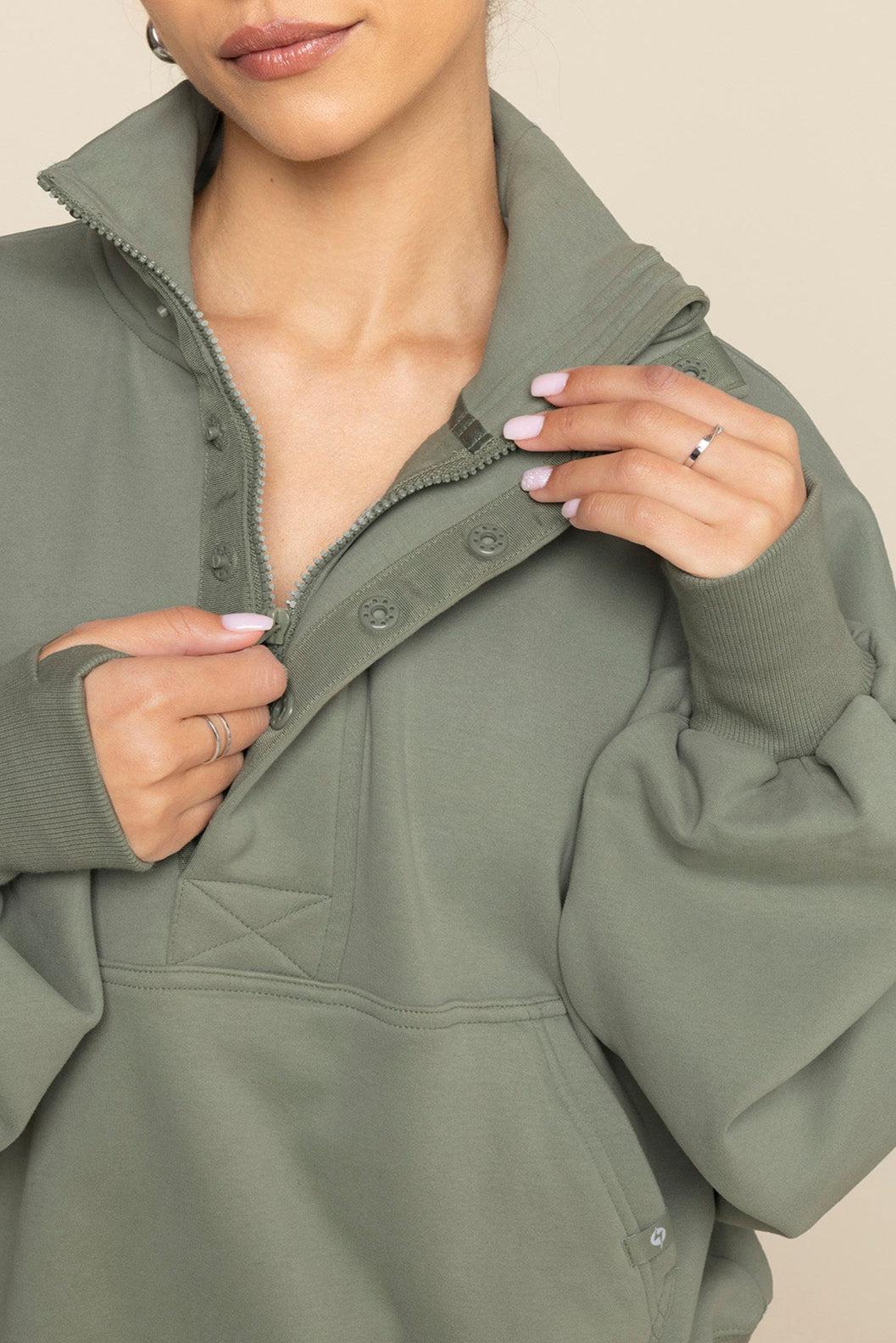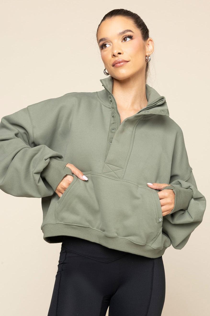 Ooey Gooey Crop Half Zip - Light Sage