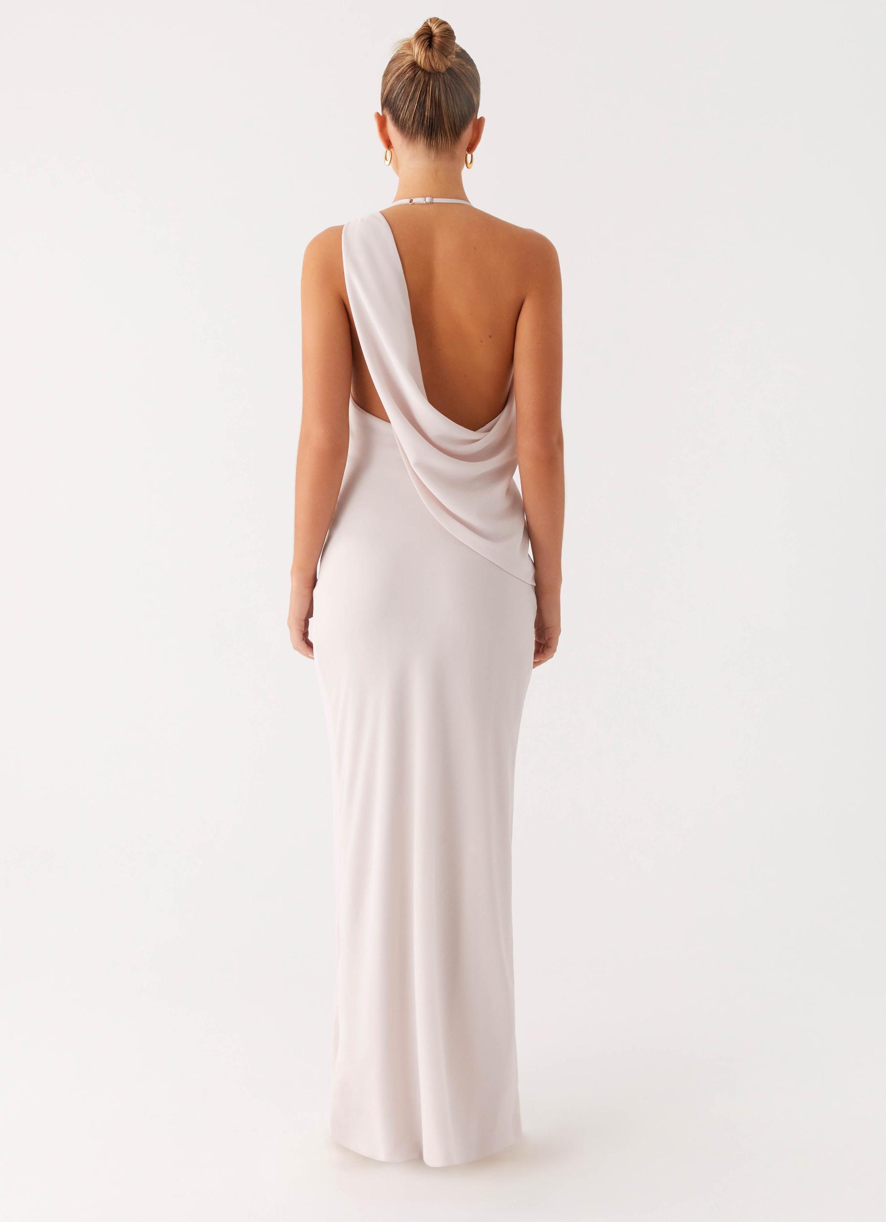 Peppermayo Exclusive The Opal Glow Maxi Dress is made for golden hour glamour. Crafted in a luxe off-white hue, this silhouette features an asymmetric halter neckline and bias cut that flatters and flows. A draped sash at the low back adds an elegant twist, while the invisible side zipper and full lining keep things sleek and seamless. - Asymmetric halter neck- Maxi length- Bias cut- Fully lined- Invisible zipper at side seam- Low back with draped sash detail- Fabric: 100% Polyester- Lining: 100% Polyester Size AU 8 / US 4 garment measurements: Bust: 78cm / 30.71inWaist: 70cm / 27.56inHip: 94cm / 37.01inLength: 150cm / 59.06in Yasmin is 174cm and wearing a size AU 6 / and US 2