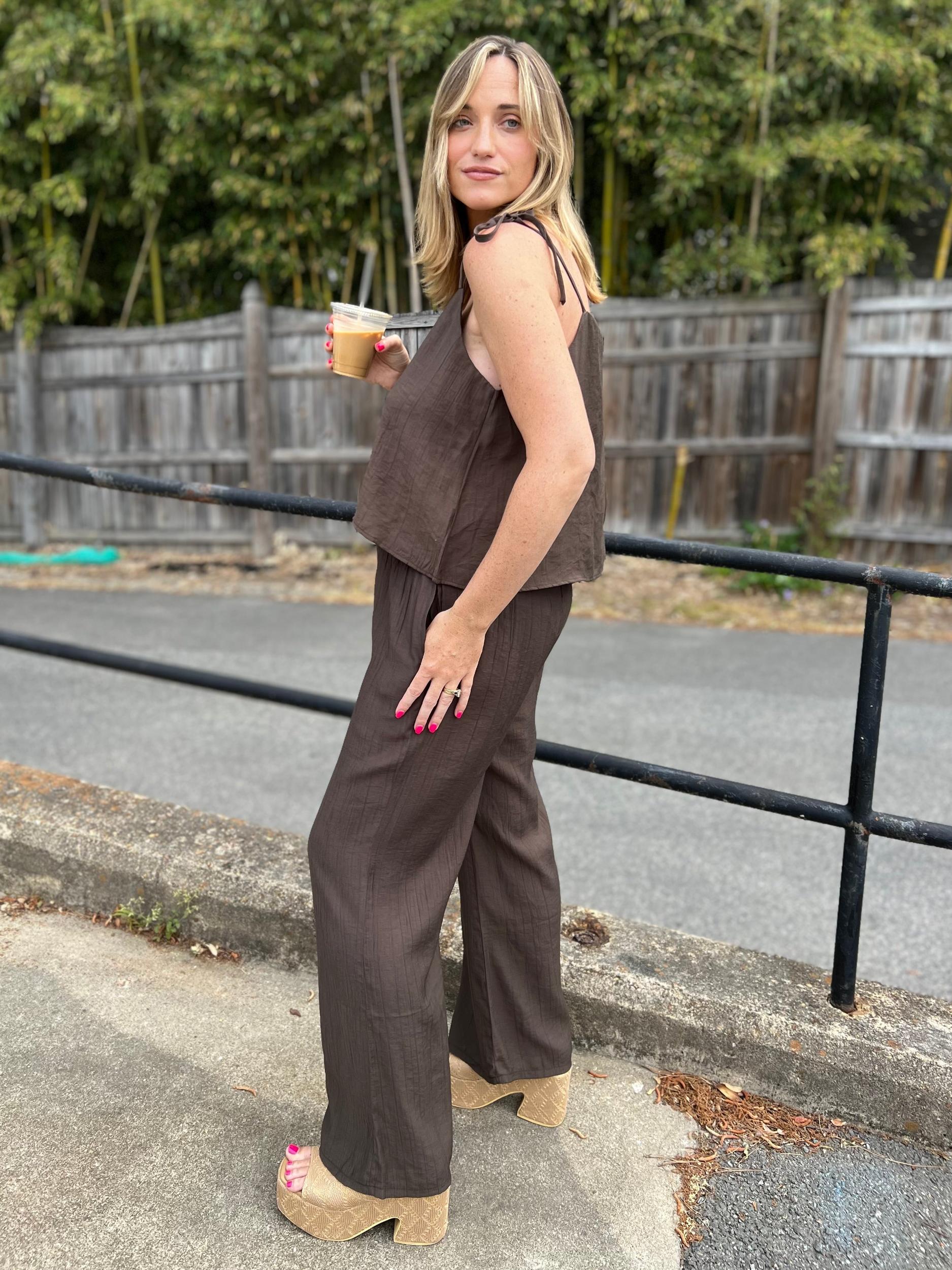 Introducing our Open Air Pants - the perfect pairing to the Open Air Top! These flowy, dark earth colored pants provide a casual and comfortable look. Ideal for any occasion, these pants will have you looking stylish and feeling relaxed.