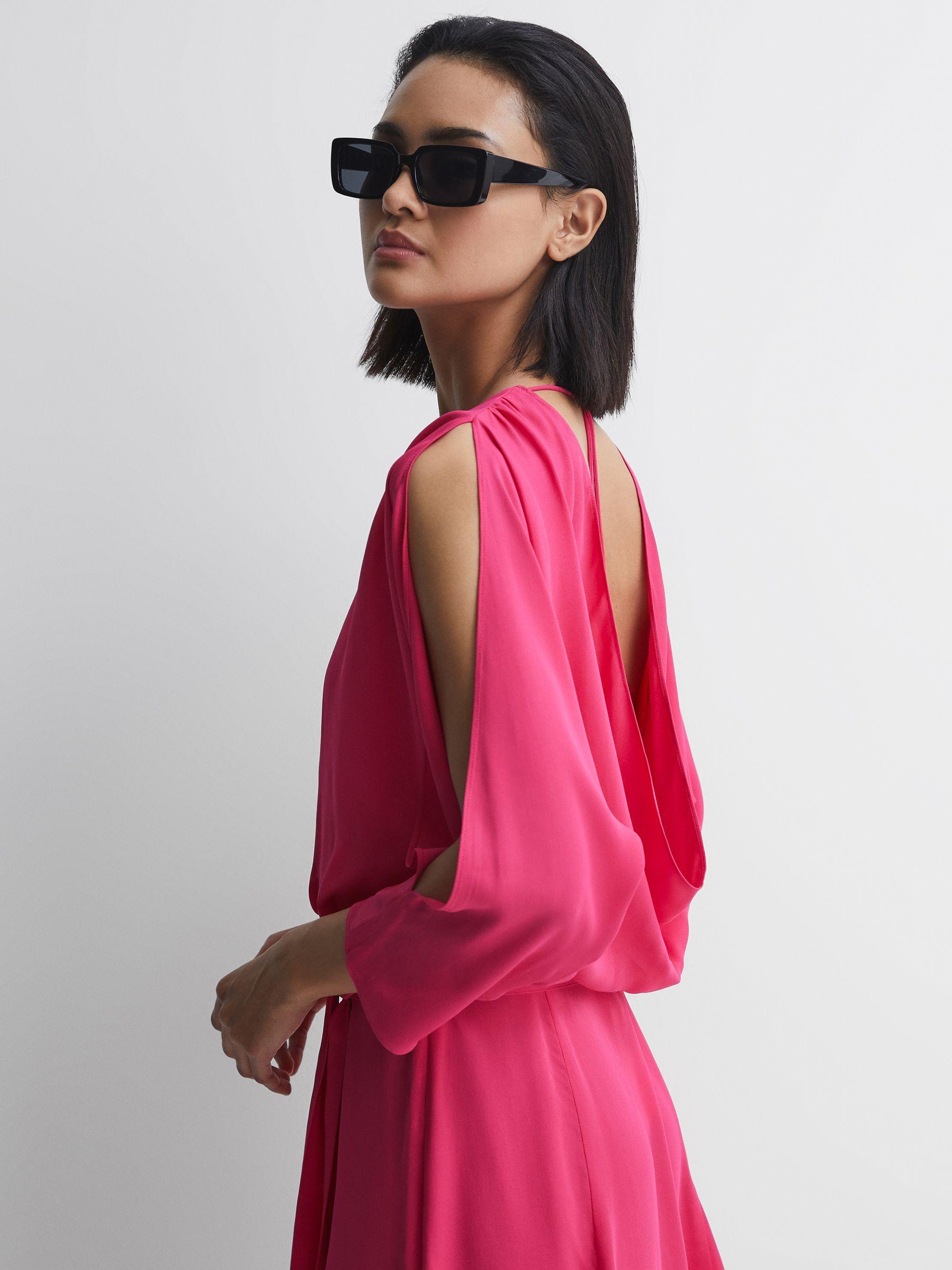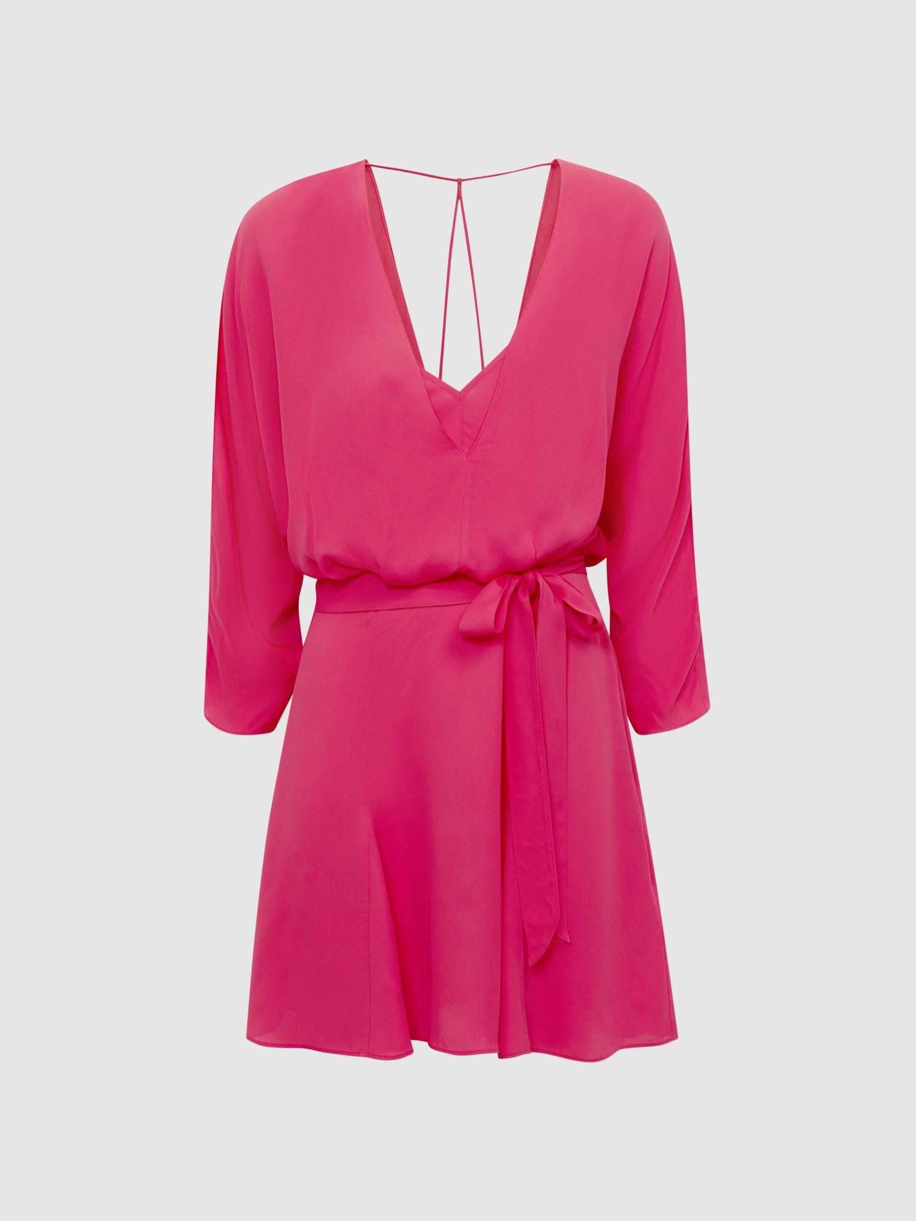 Embrace flirtatious styling with the Anna mini dress. It’s an open-back design complemented with strappy detailing. A belt cinches the waist for a feminine shape, whilst ¾ length split sleeves lend a sensual mood. Its deep V-neckline is assuaged with a slip lining, for a sophisticated appearance. Pair with tonal accessories for a bright, monochrome aesthetic. V-neckline. Open-back design. Strappy detailing to reverse. ¾ length split sleeves. Self-tie waist belt. Mini length. The model is wearing a size 8 Measurements of model: Height 5ft 9" / 175cm.