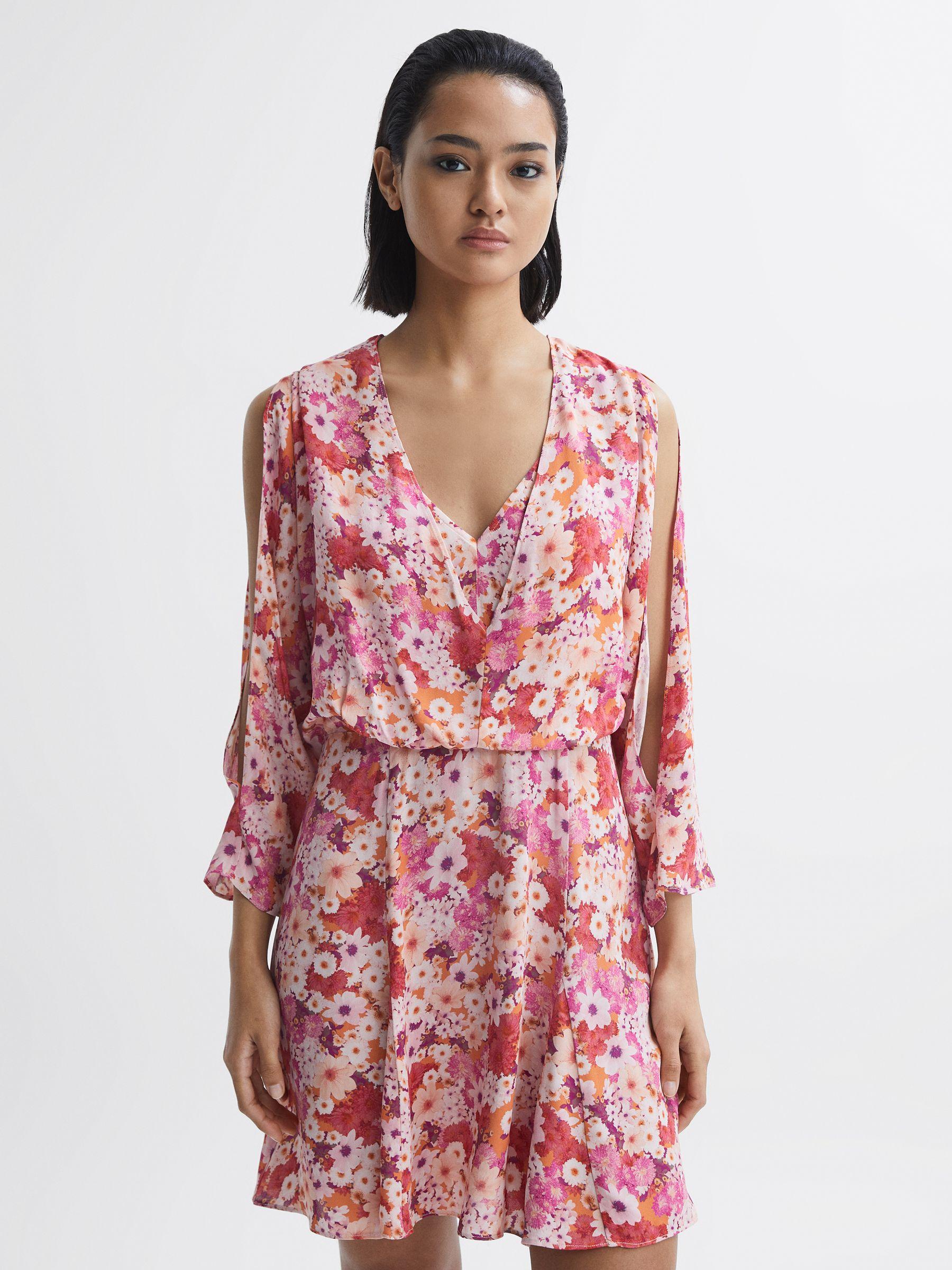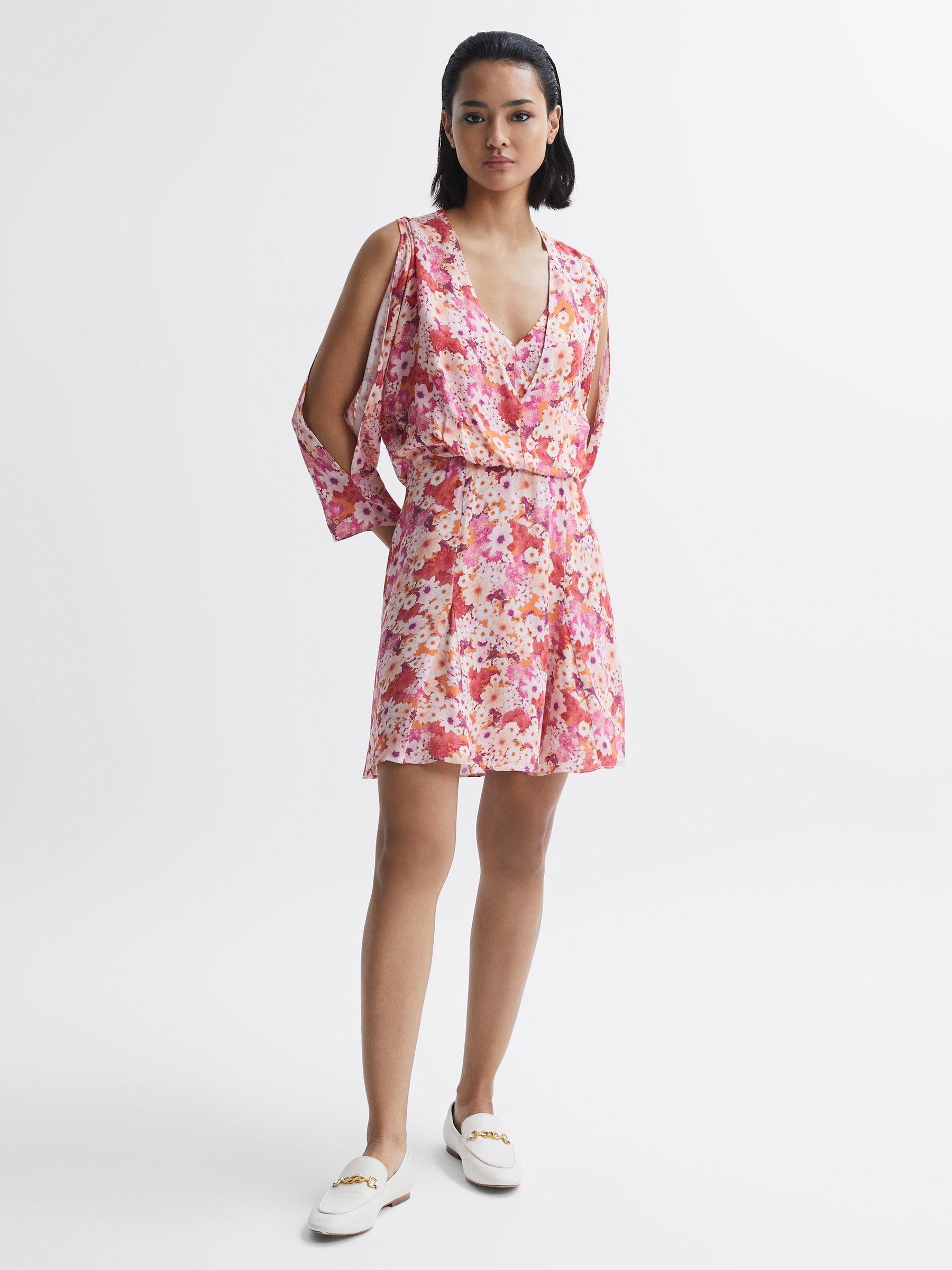 Embrace flirtatious styling with the Annalisa mini dress. It’s an open-back design complemented with strappy detailing and a floral print. The waist is fitted for a feminine shape, whilst ¾ length split sleeves lend a sensual mood. Its deep V-neckline is assuaged with a slip lining, for a sophisticated appearance. Pair with plain loafers or choose heels for a playful aesthetic. Floral print. V-neckline. Open-back design. Strappy detailing to reverse. ¾ length split sleeves. Mini length.