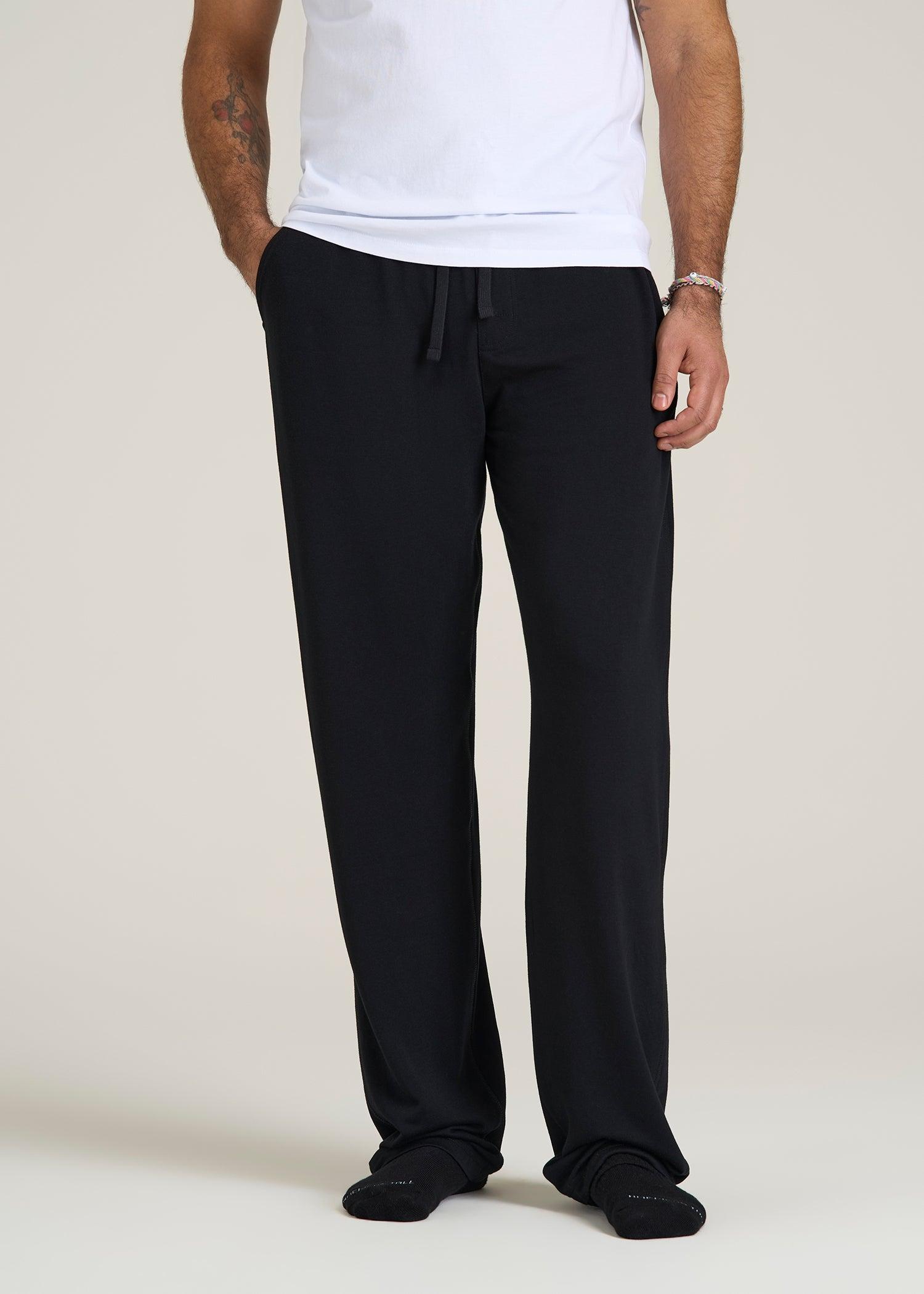 Pajama Pants Made for the Taller Guy Dream Big, Lounge Tall Relax and recharge with our Open Bottom Tall Men's Pajama Pants, designed with the taller guy’s comfort in mind. These men's tall lounge pants feature a relaxed fit and full-length cut, ensuring you can unwind or sleep in total comfort. The external drawstring and elastic waist provide an adjustable fit, while the open bottom keeps things breezy and free.• Full-length tall loungewear for complete coverage• External drawstring and elastic waist for a perfect fit• Open bottom for a relaxed, airy feel SIZE & FIT: Semi Tall Inseam: 33" Tall Inseam: 35" Extra Tall Inseam: 37" Relaxed fit for ultimate comfort Full length to suit taller figures Elastic waist for flexible adjustment Model is 6'8" wearing size M Tall FABRIC & CARE: 63% polyester, 33% rayon, 4%, spandex Machine wash cold with like colors Do not bleach Tumble dry low Low heat iron
