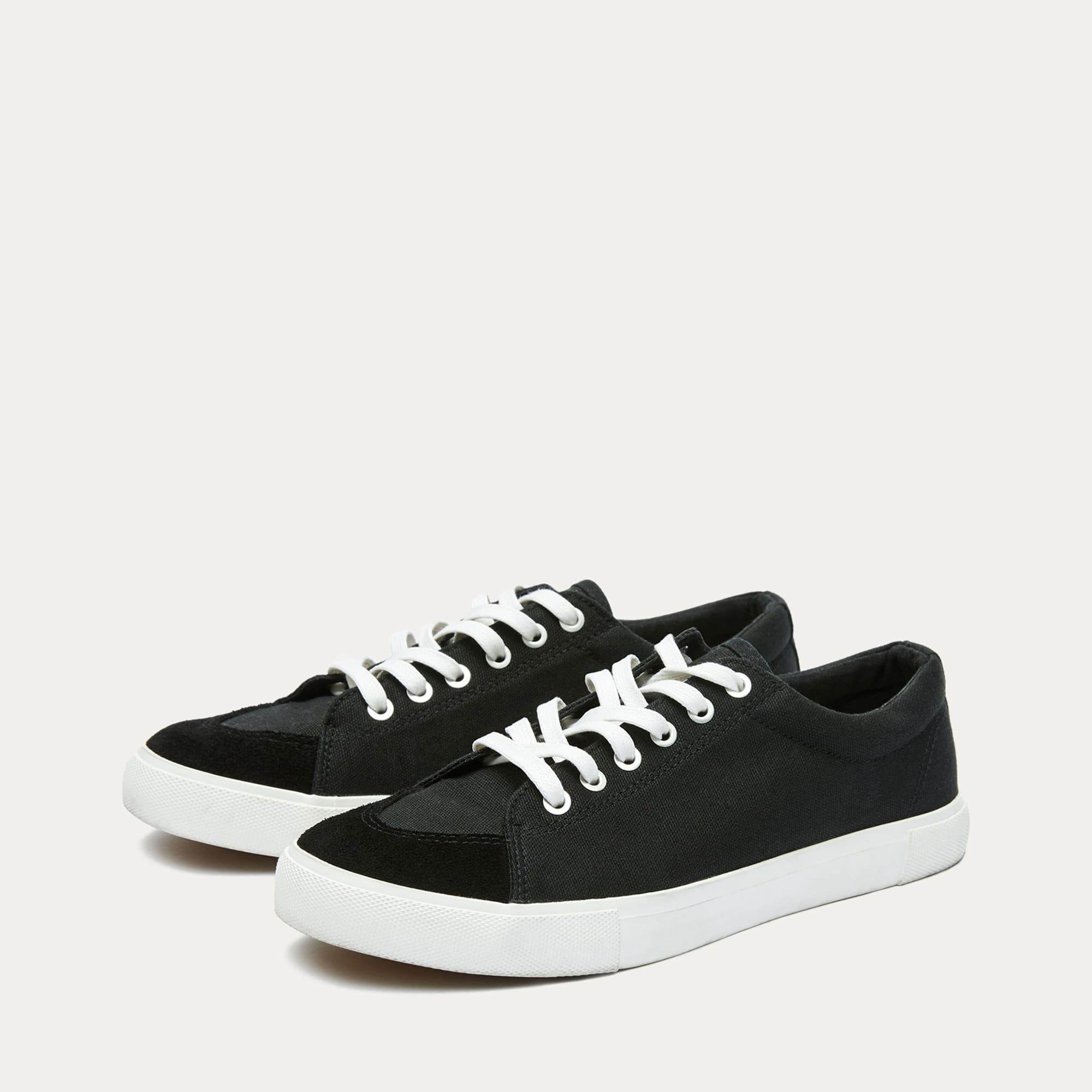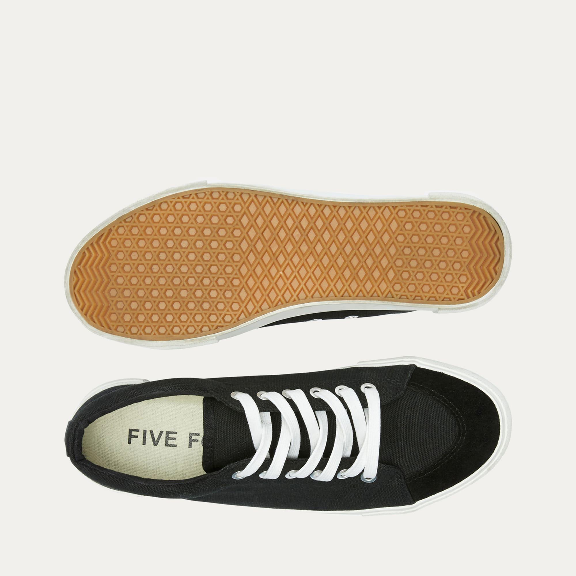 Low-top lace up sneaker with a round toe Vulcanized rubber outsole Embossed FIVEFOUR logo on suede tab 100% cotton lace Metal eyelets Molded padded insole for extra comfort Suede and cotton canvas upper