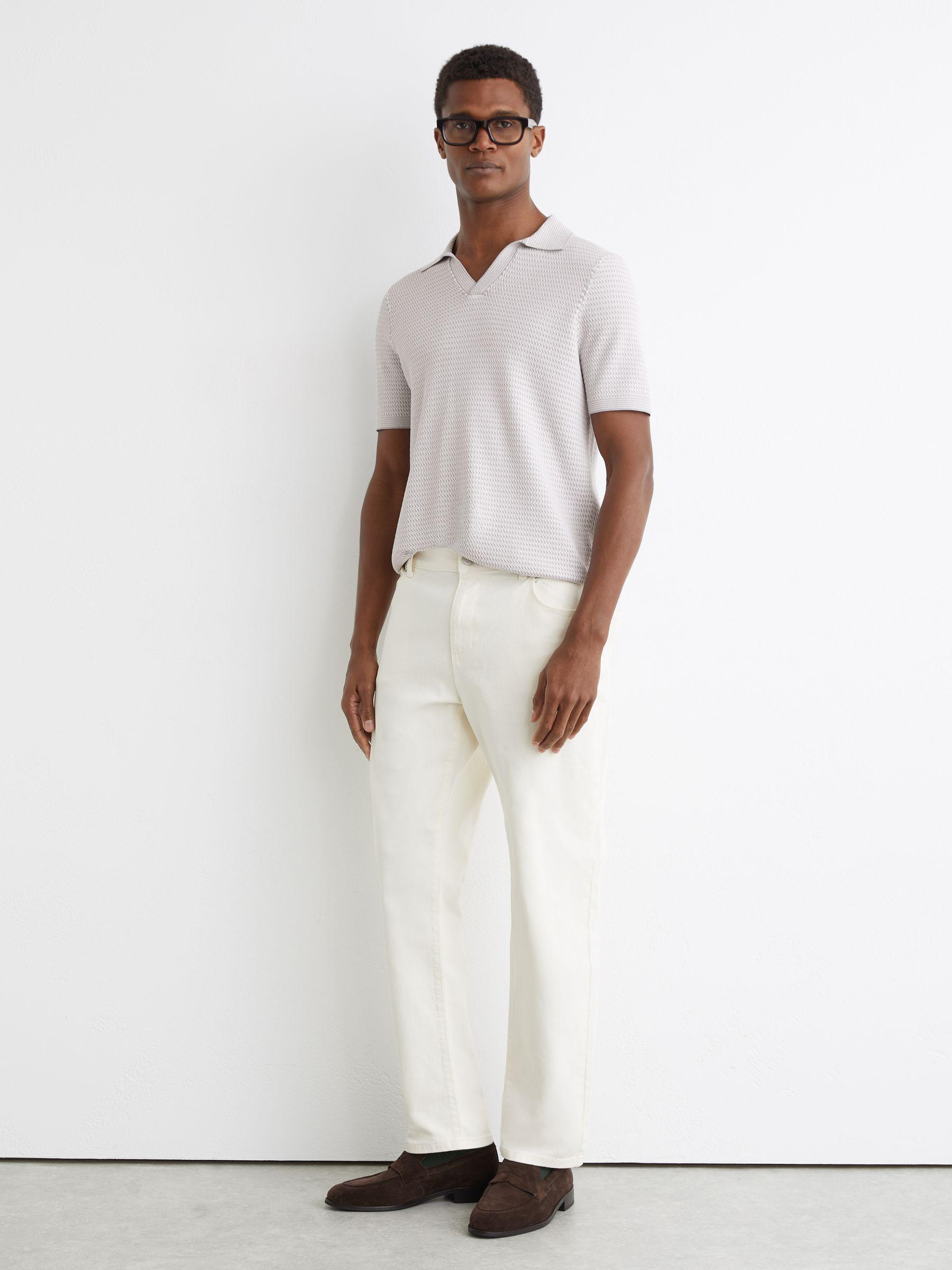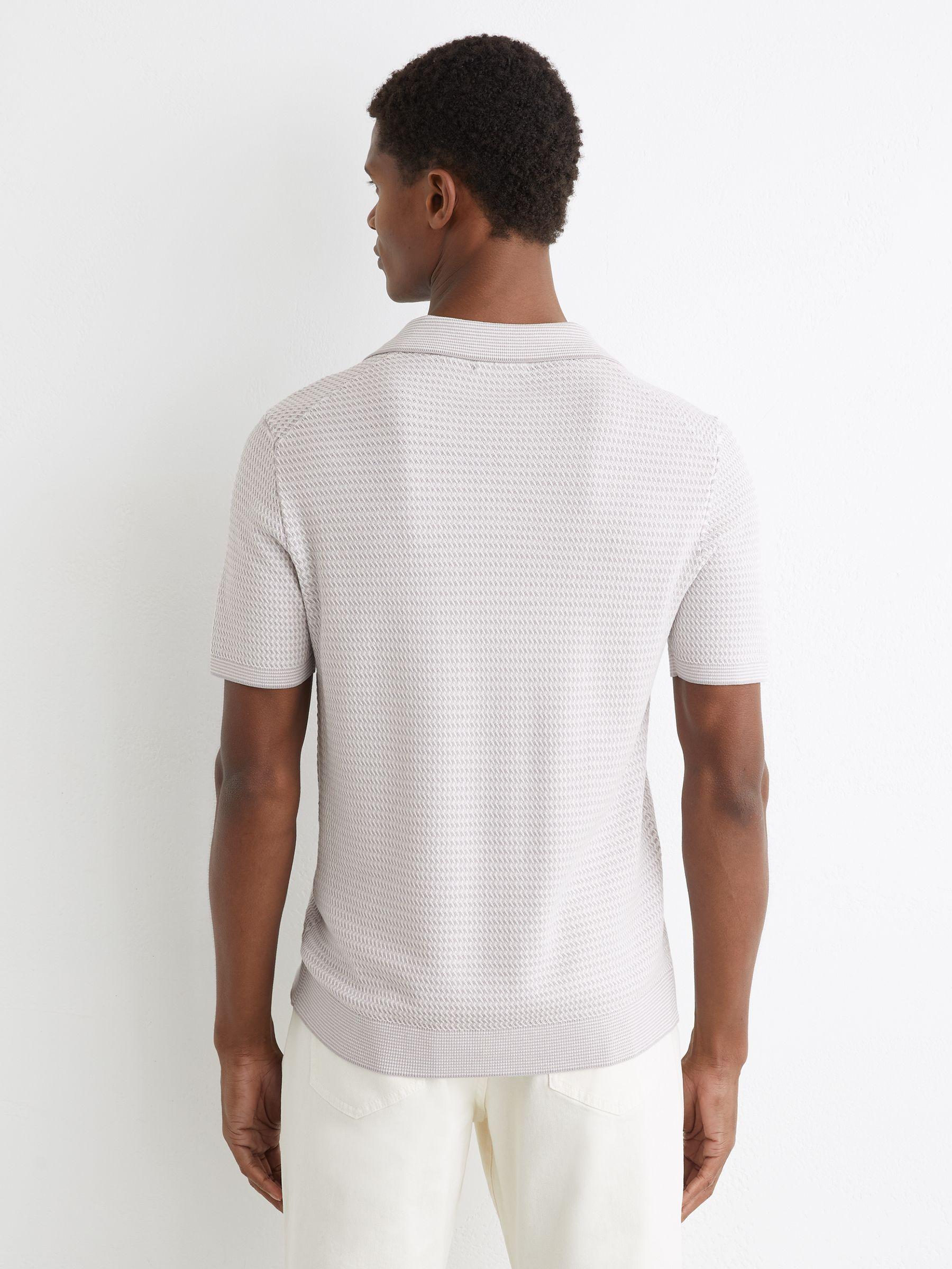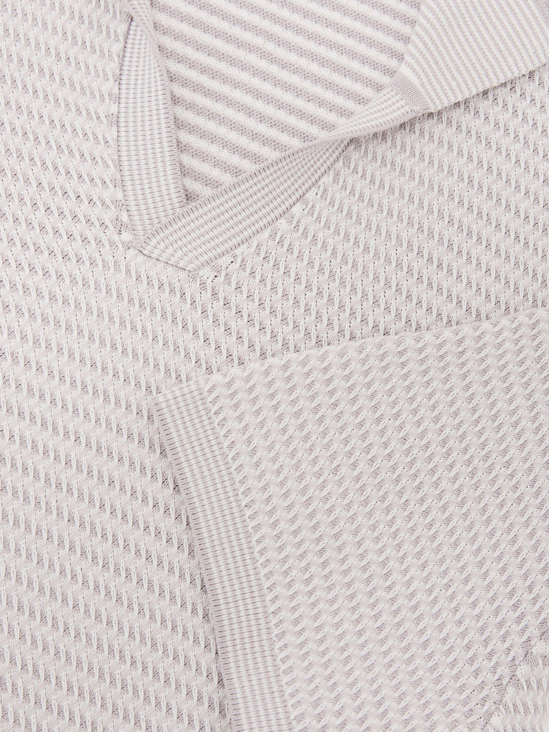 Open-Collar Textured-Knit Polo Shirt in Soft Grey