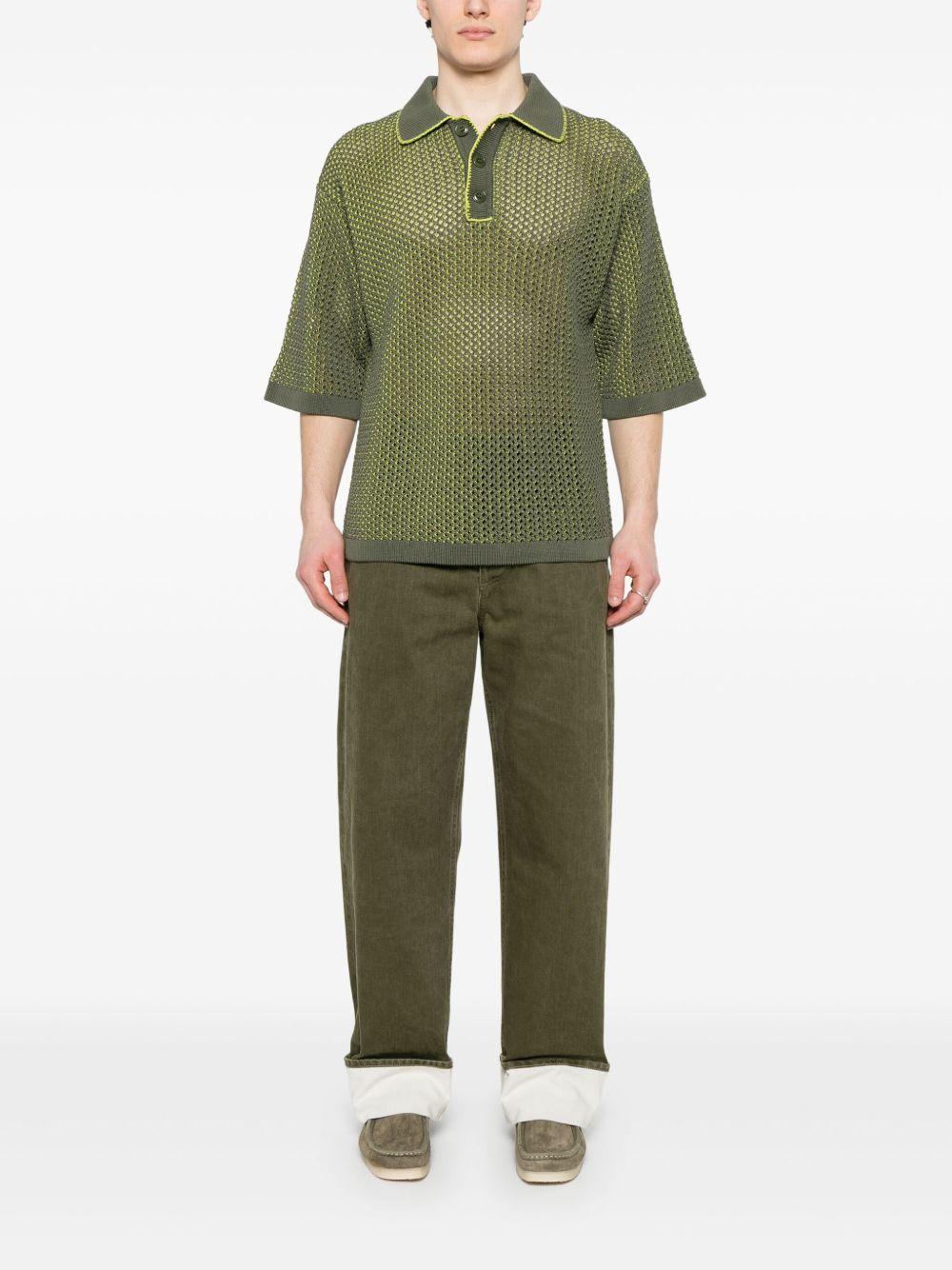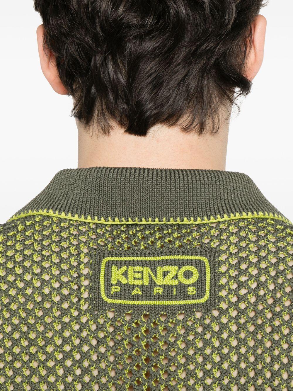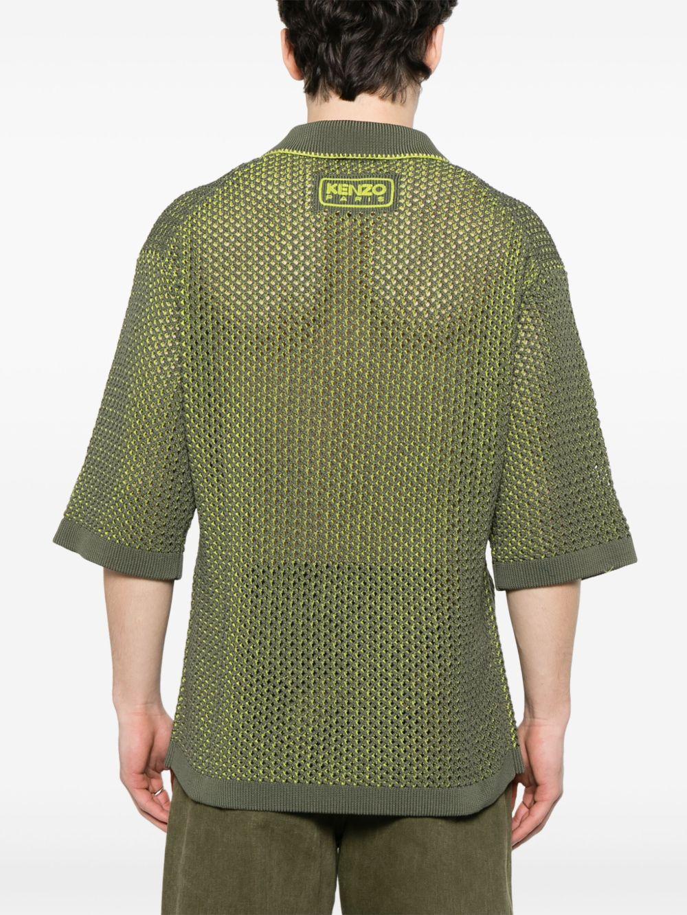 Kenzo open-knit polo shirt | Green | olive green | front button placket | polo collar | short sleeves | ribbed trim | Cotton/Nylon | Polo Shirts | Clothing | Men