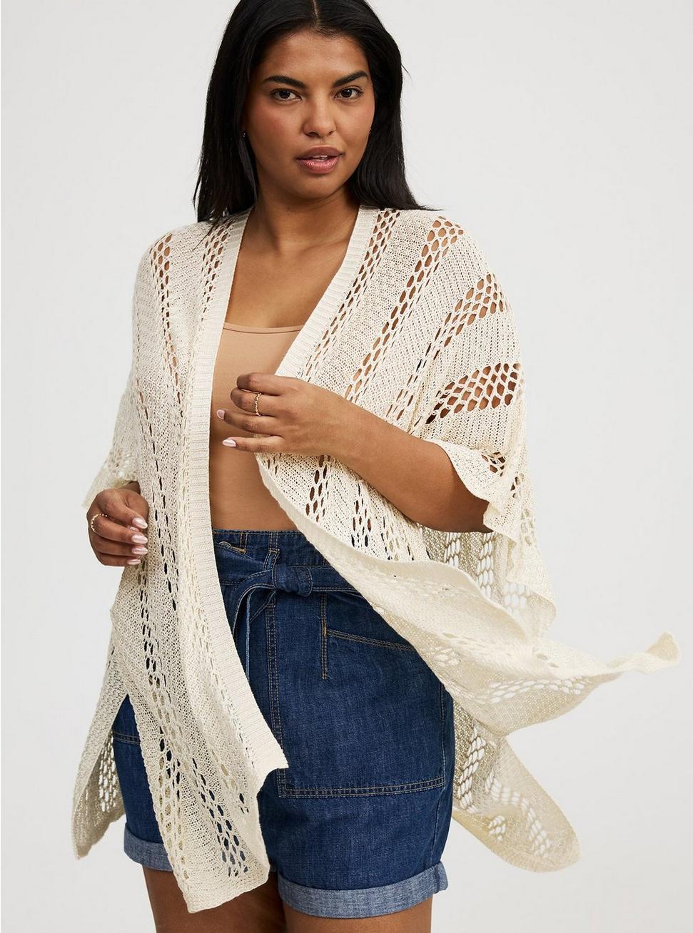 FITMeasures 31.5'' from shoulder (size 2).MATERIALS + CARE100% viscose.Machine wash cold. Line dry.Imported.DETAILSOpen front.Short sleeves.
