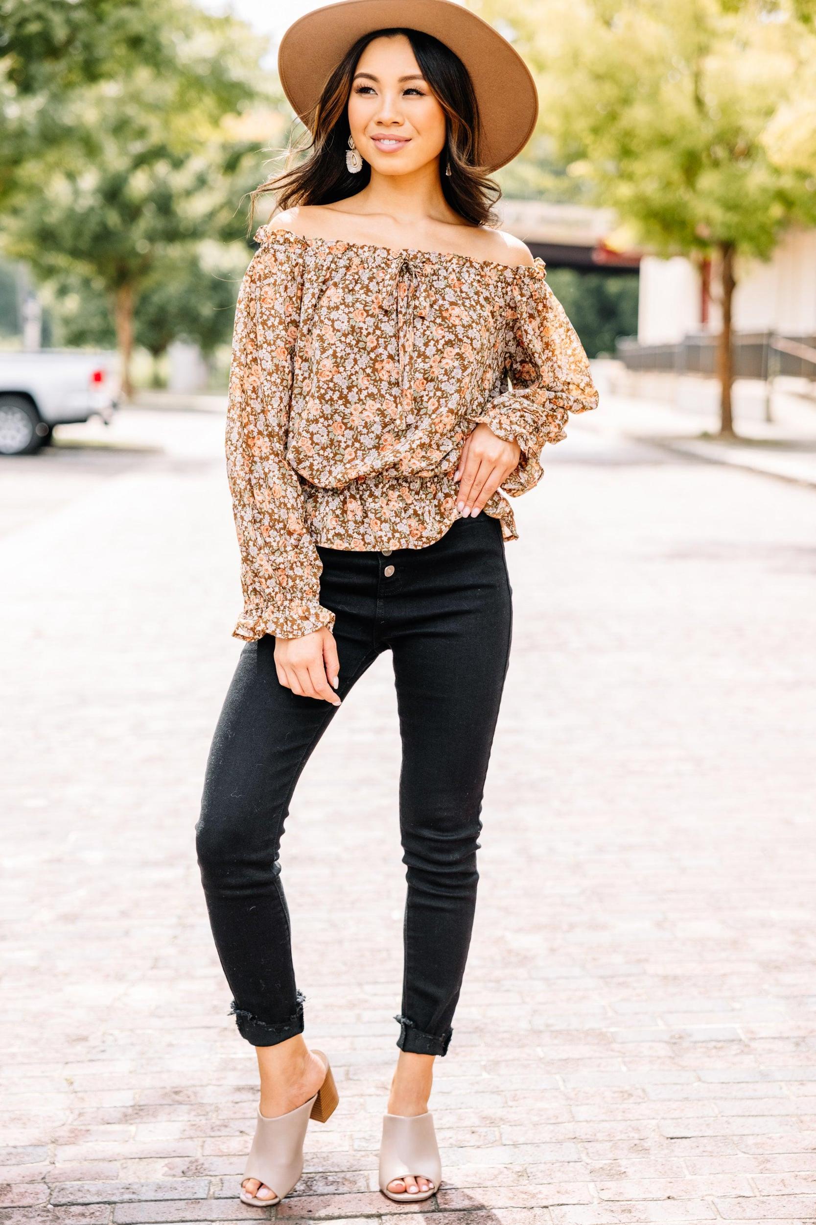 If you are open to love then you are ready for this blouse! This ditsy floral blouse is just so feminine and sweet! It is going to look fabulous with your favorite jeans and booties this fall! This is the blouse that you want when on a fall vacay or a fun date night! This blouse features long sleeves, an off the shoulder neckline, ditsy floral print, and an elastic waistband. Material has no amount of stretch.Cindy is wearing the small.