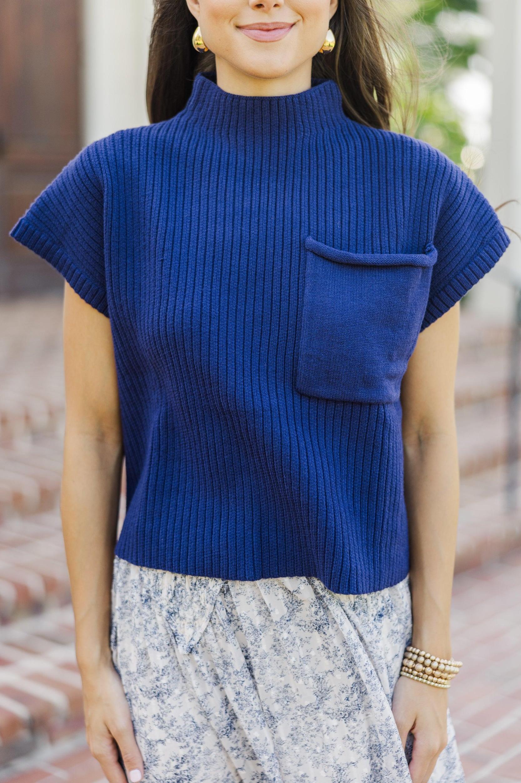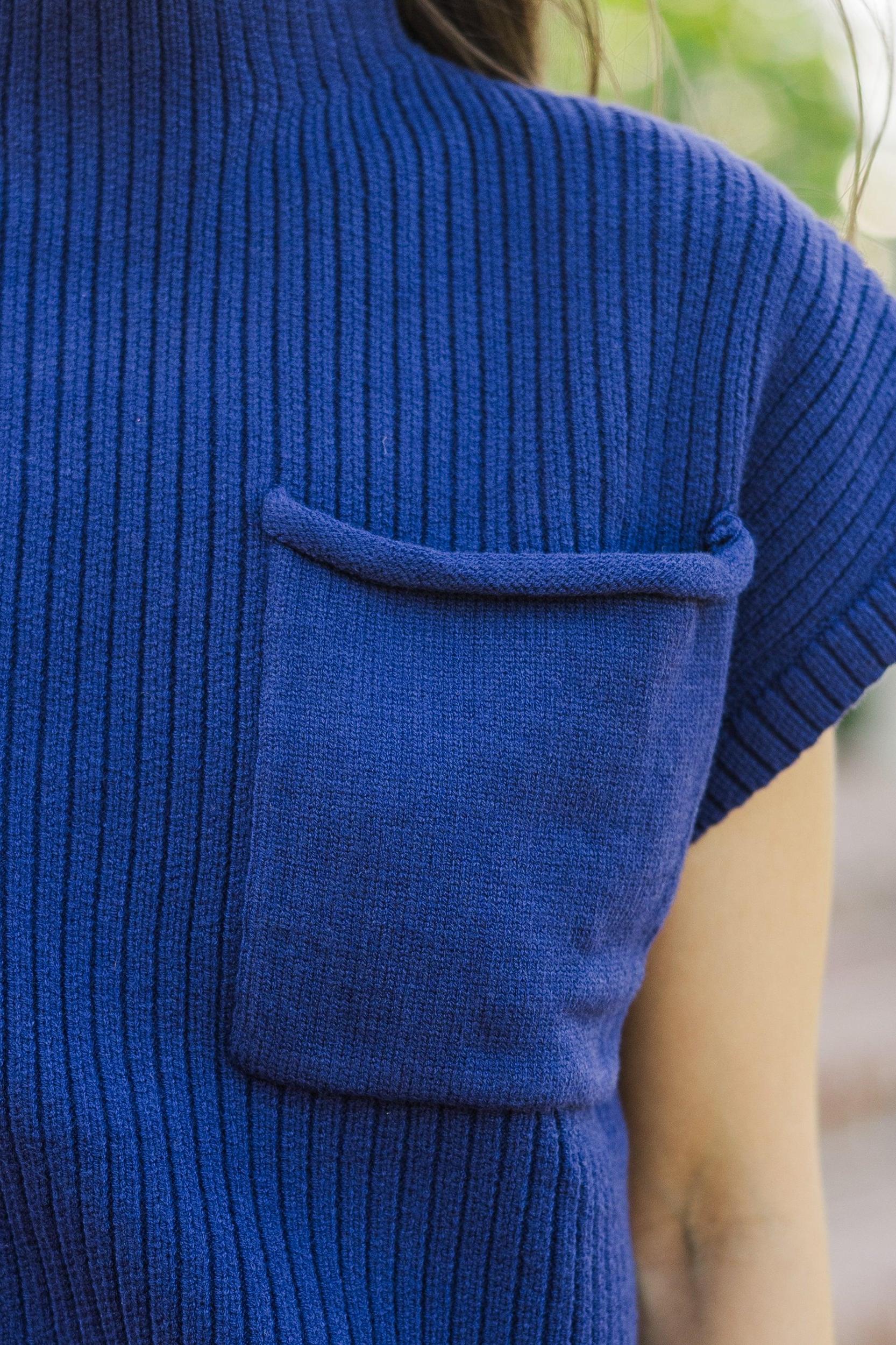 This cap sleeve sweater is so chic and perfect for moving into the fall season! The ribbed fabric and mock neckline is super cozy and we love the slightly cropped hemline. This sweater is going to look great at the office with trousers or with jeans for a more causal look. Mock neckline Cap sleeves Breast pocket Ribbed knit fabric Generous stretch Sydney is wearing the small.