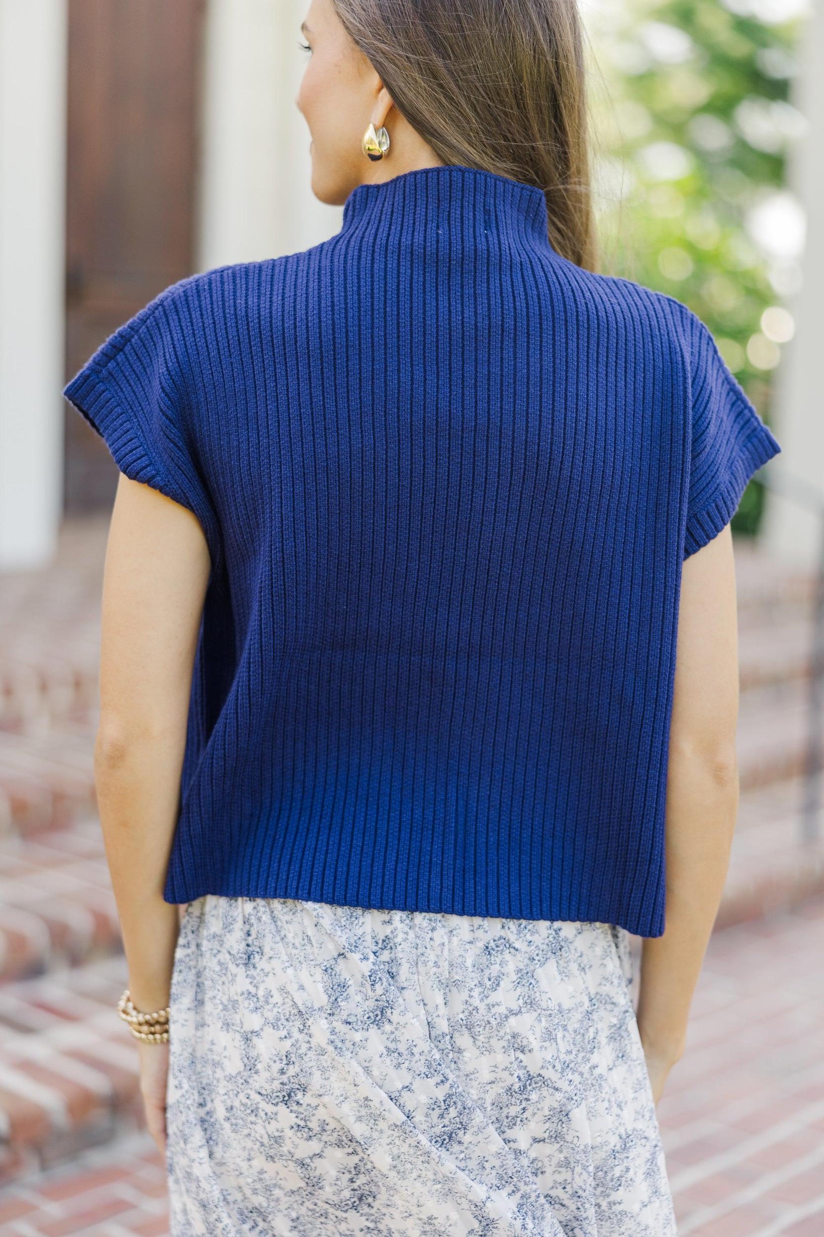 Open Your Mind Navy Blue Short Sleeve Sweater Female Product Image