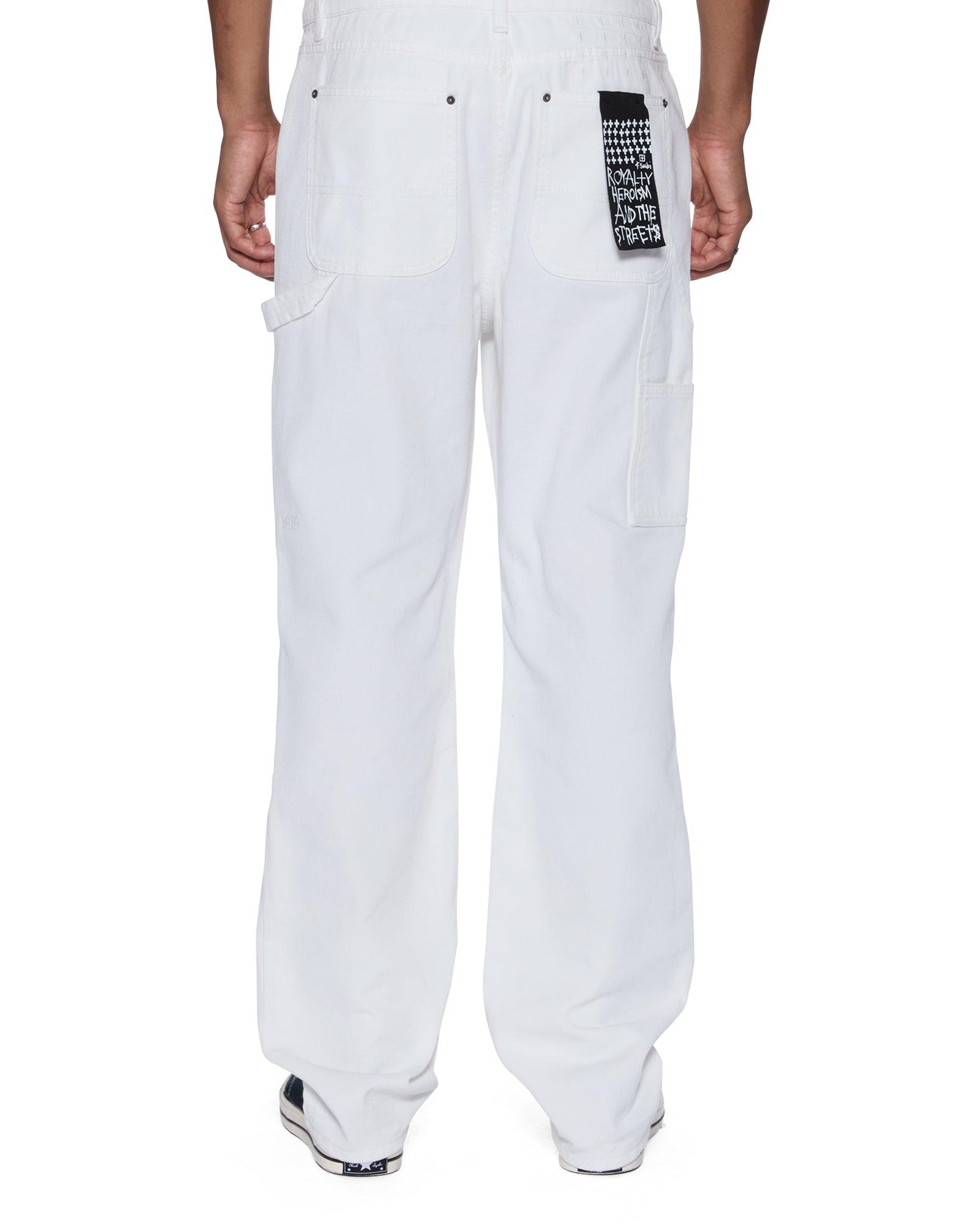 The Operator Pant Arktik is a mid-rise straight-leg pant with carpenter panels, right leg carpenter�s pocket, tab, cut-away pockets, and back patch pockets. Made from European rigid white denim with a light garment wash, it is finished with signature T-box and 4x4 embroidery, ghost patching detailing, and Ksubi branded hardware.