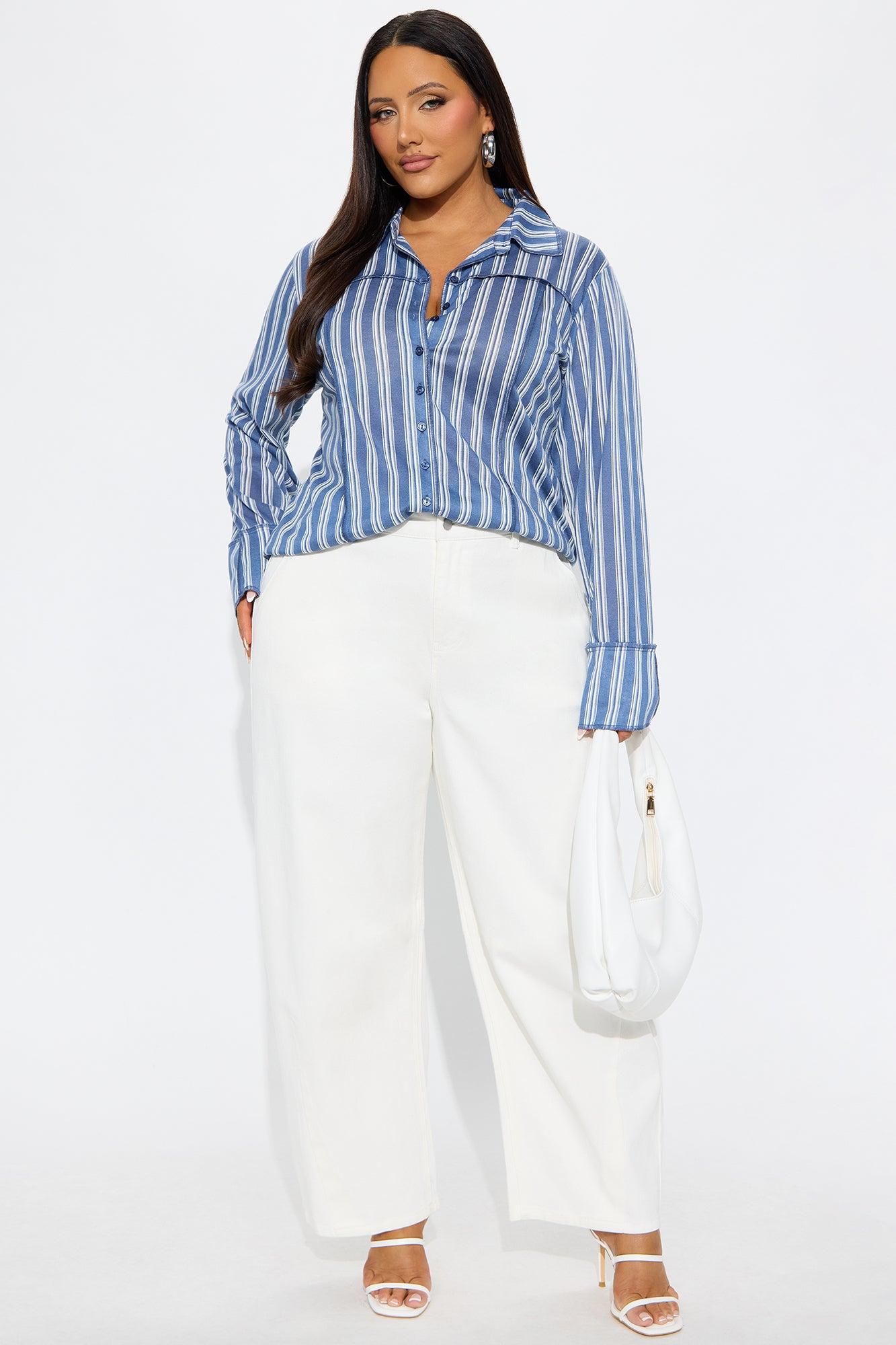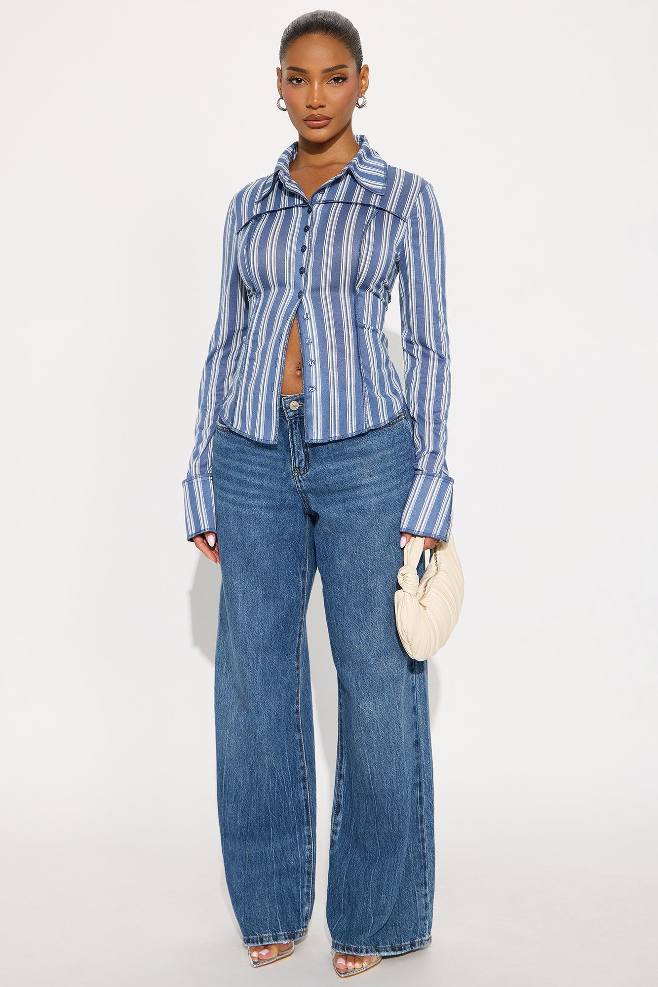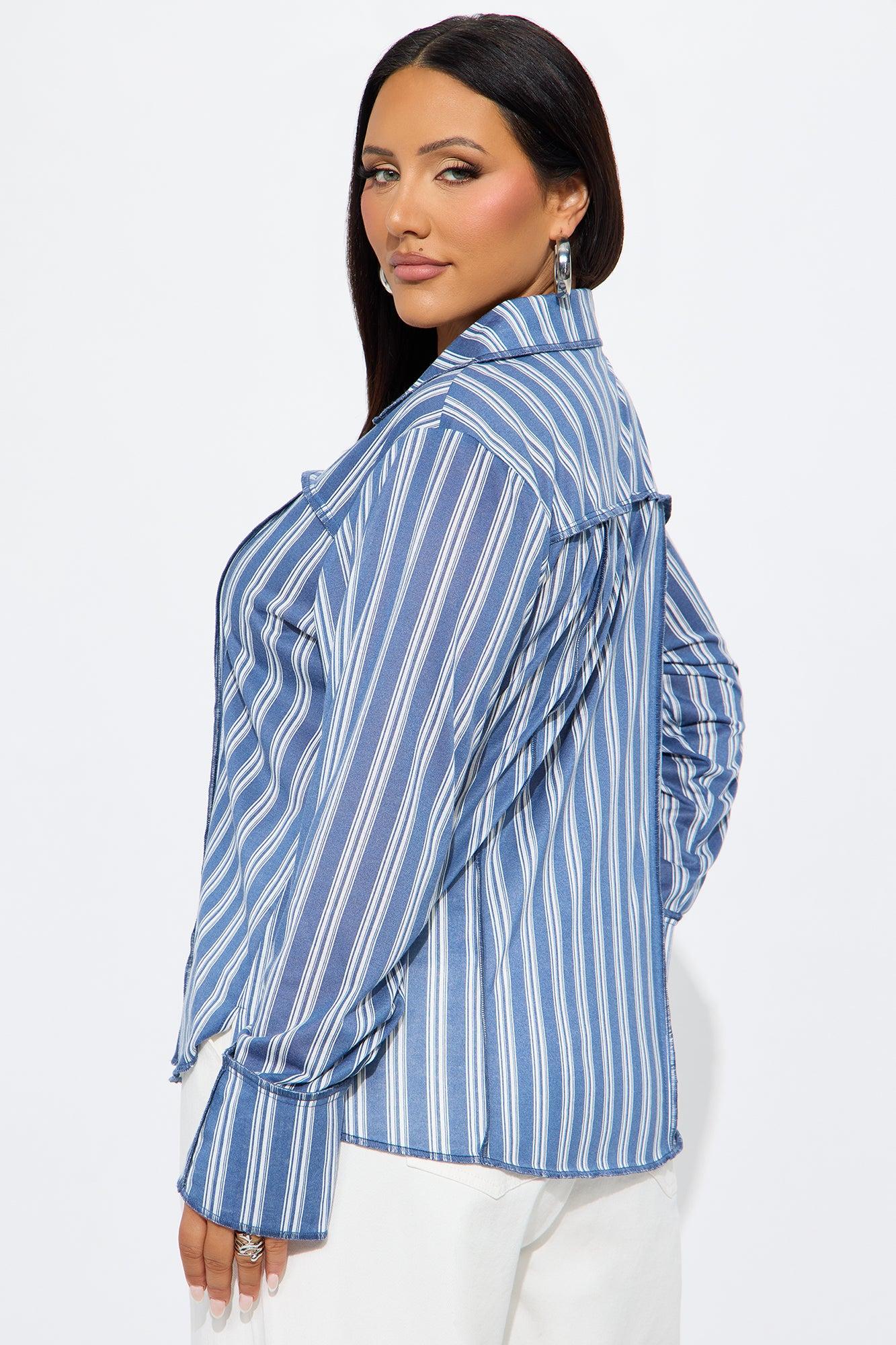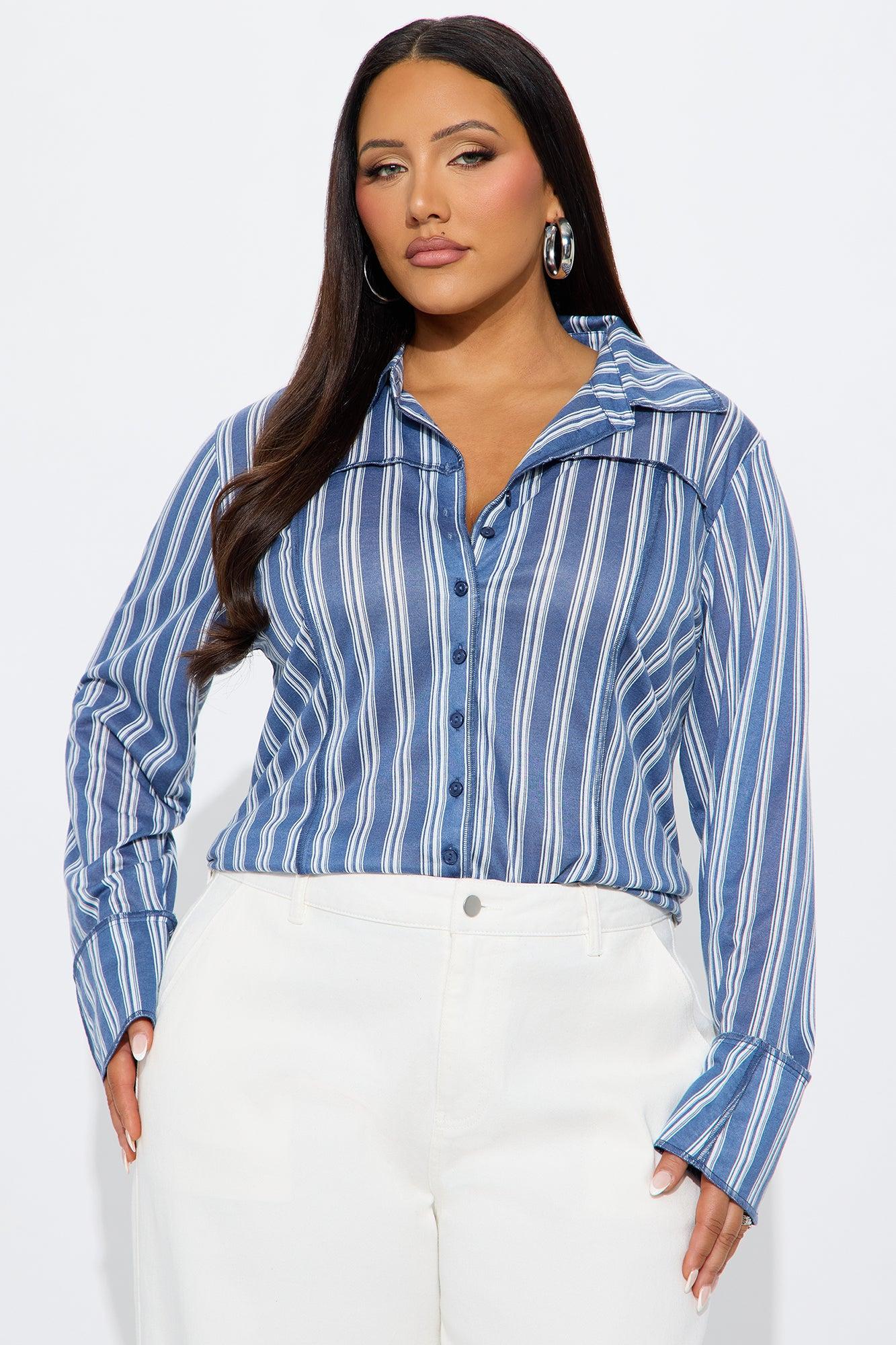 Optical Illusion Striped Long Sleeve Button Up Shirt - Blue/combo Female