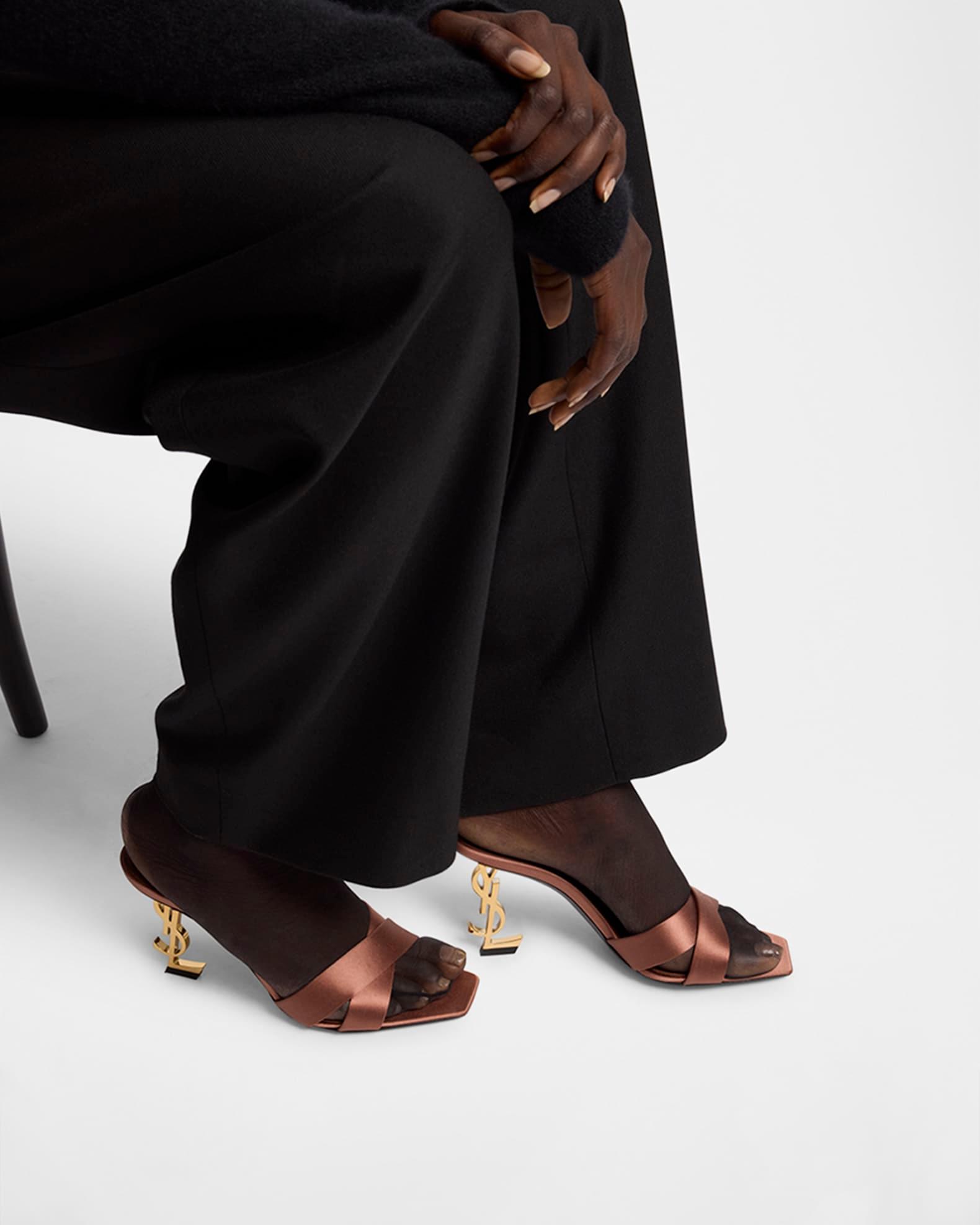 Opyum YSL Logo-Heel Satin Slide Sandals