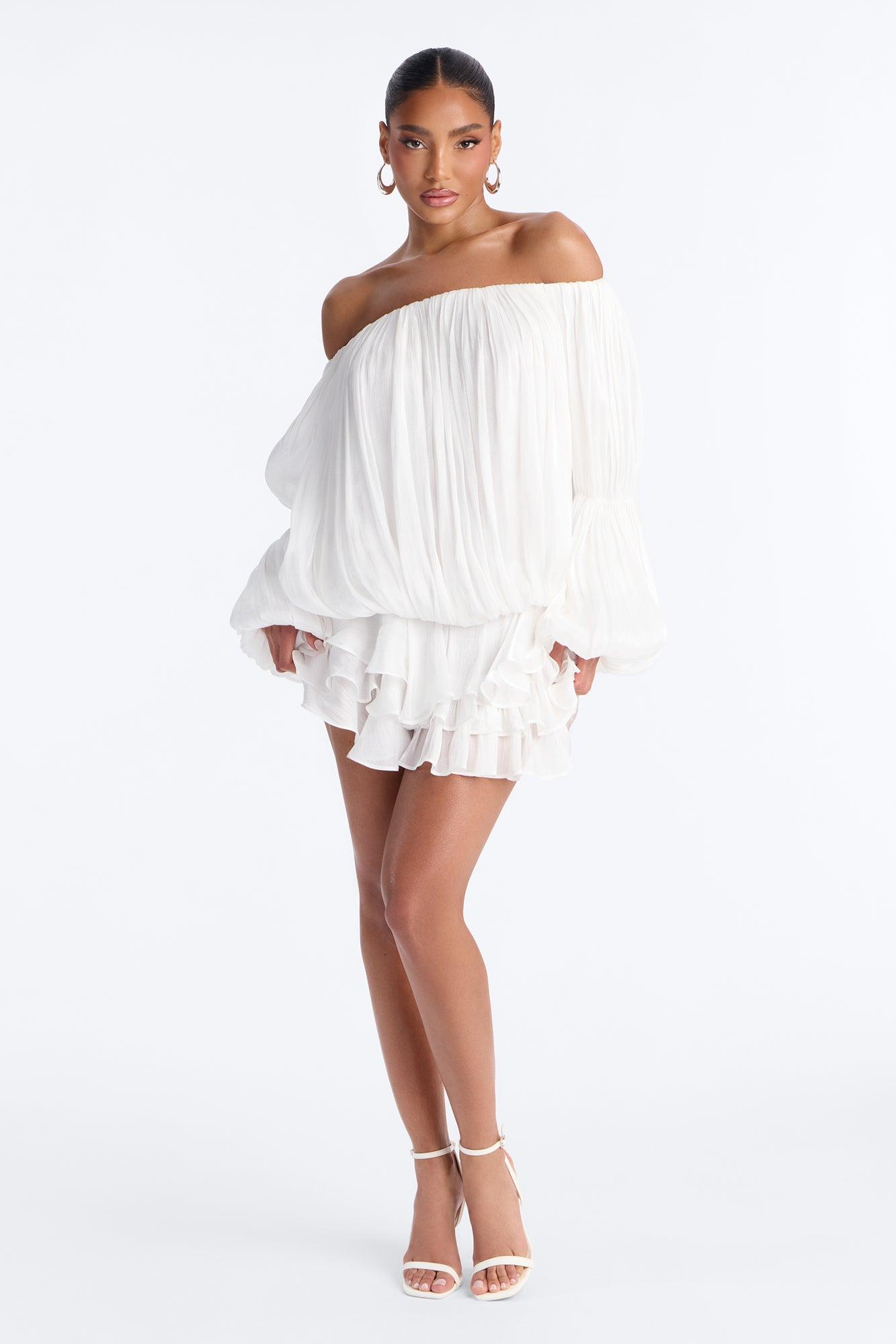 Oralee Off Shoulder Organza Mini Dress - White Female
