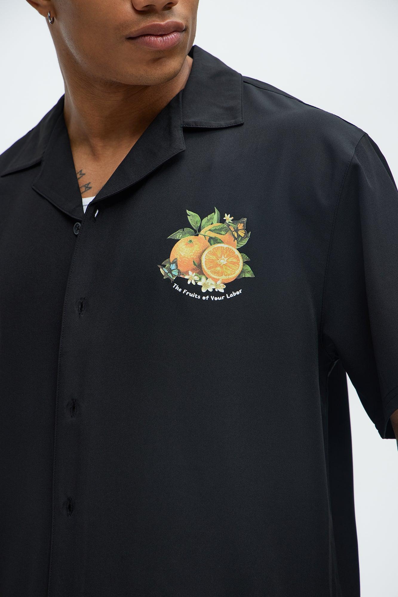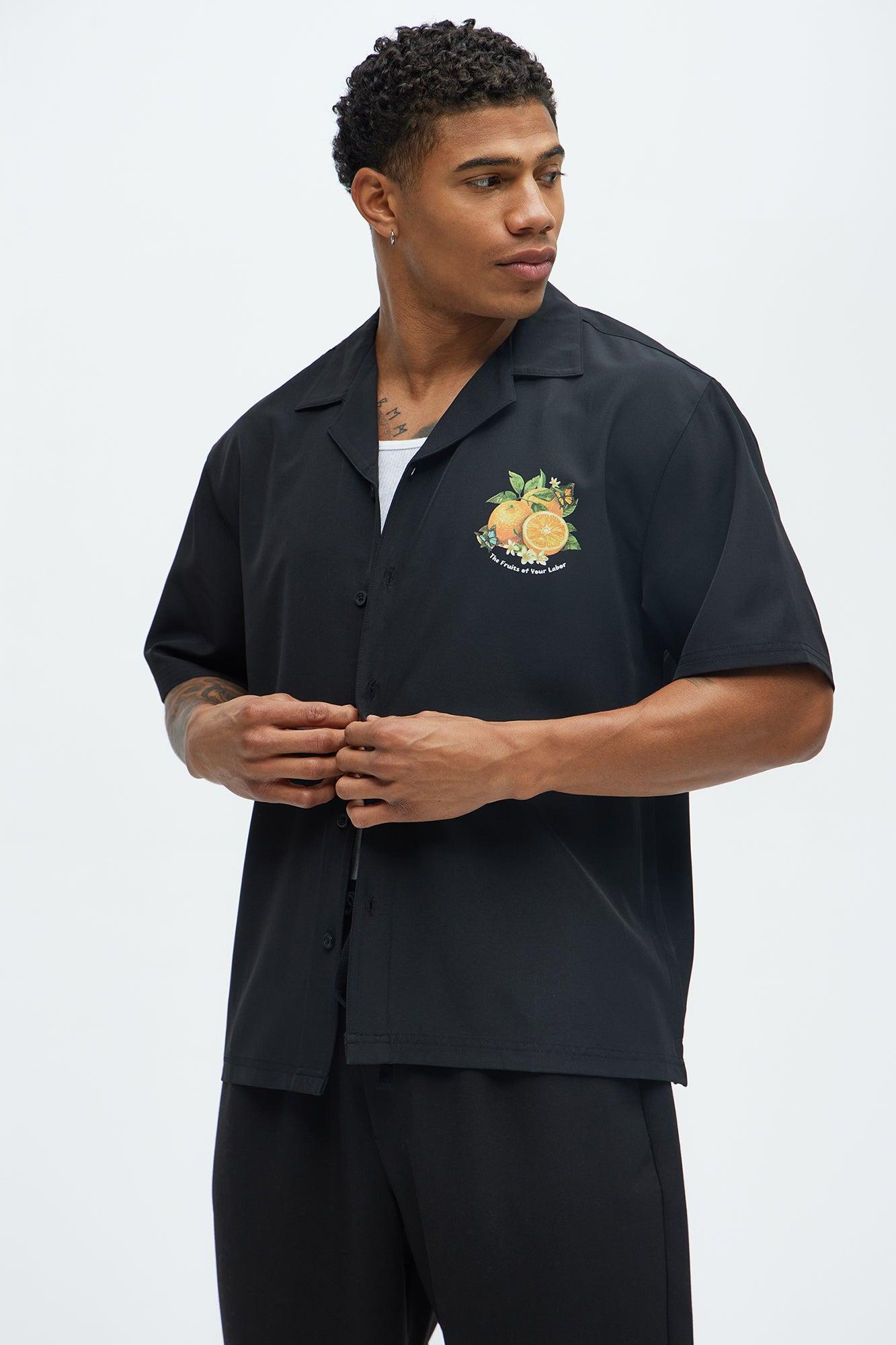 Available In Black. Cuban Collar Front Button Closure Short Sleeves Left Chest Graphic Hit Back Graphic Hit 92% Polyester 8% Spandex Disclaimer: Due To The Printing Process A Difference In Saturation May Occur. Each Garment Is Unique. Print Placement Will Vary. Imported