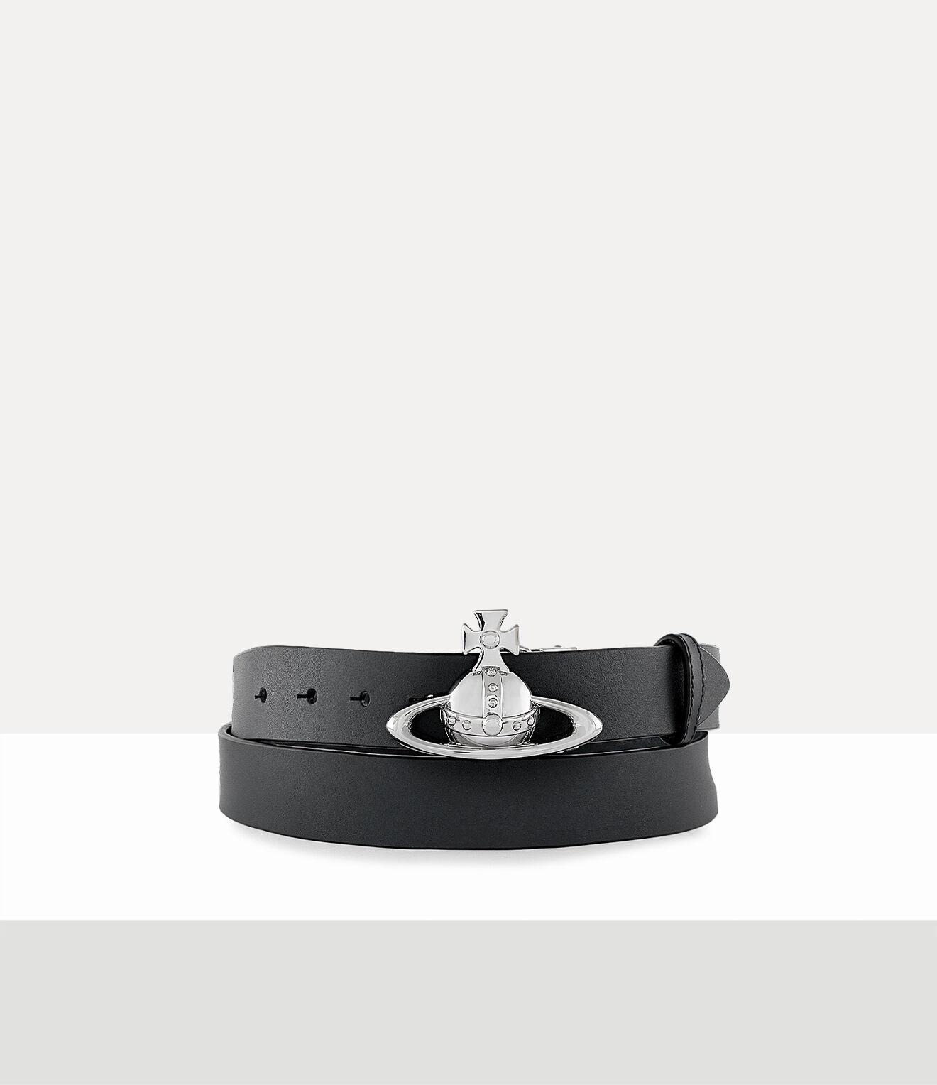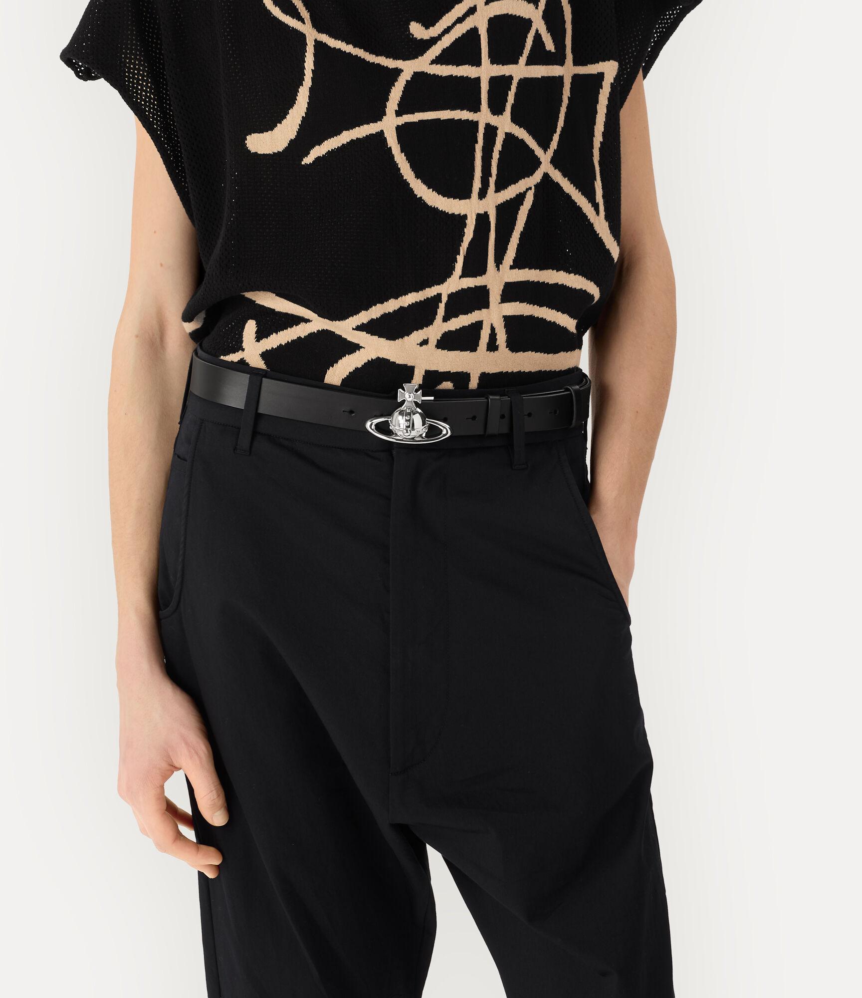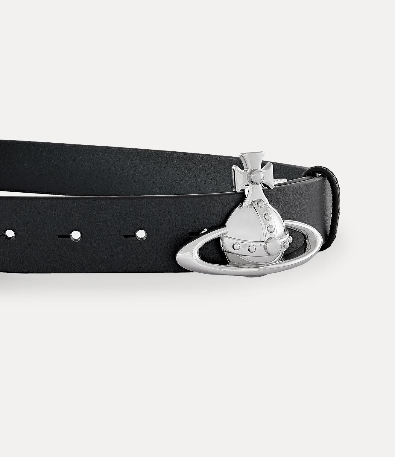 Our Orb Buckle belt revives signature iconography of the house, complete with a silver-tone orb motif at the centre of the design, which symbolises tradition, encircled by the celestial rings of Saturn to represent the future. The piece offers a smooth leather strap, finished with punch-hole detailing.