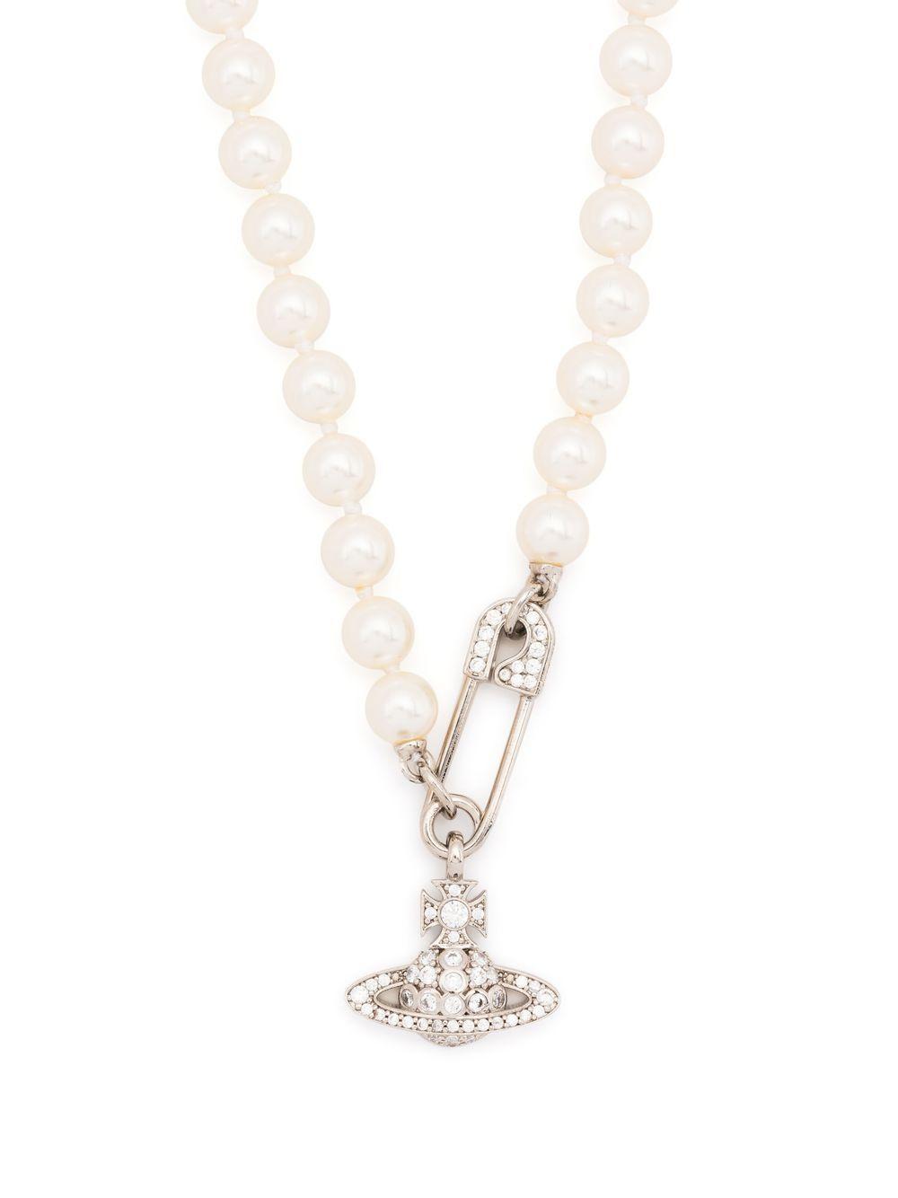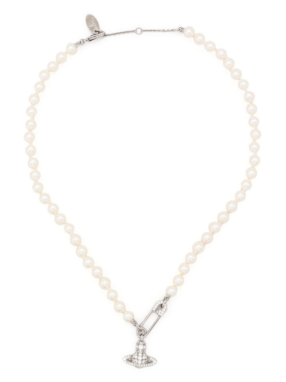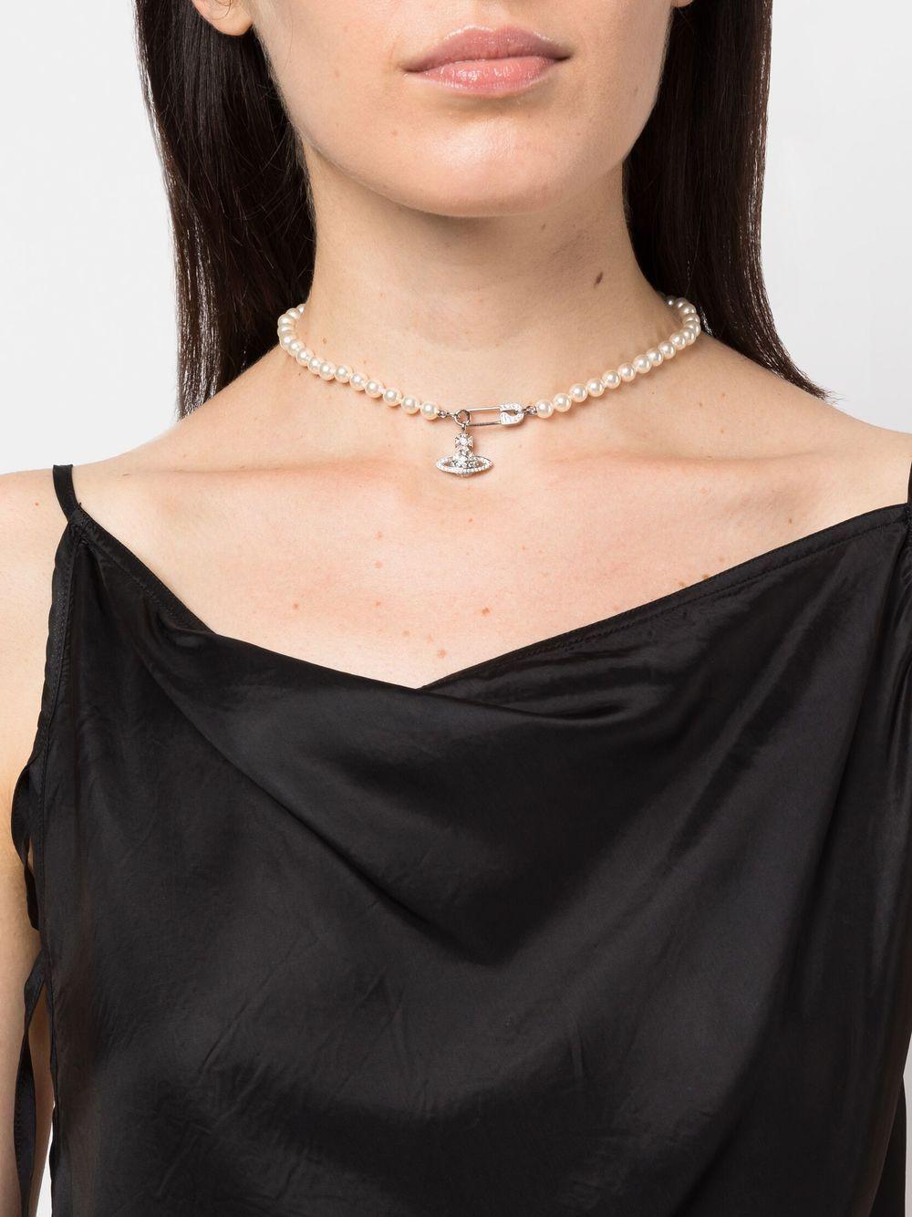 Vivienne Westwood Orb safety-pin pearl necklace | Neutrals | Pearl/Crystal/Brass | Necklaces | Jewelry | Women