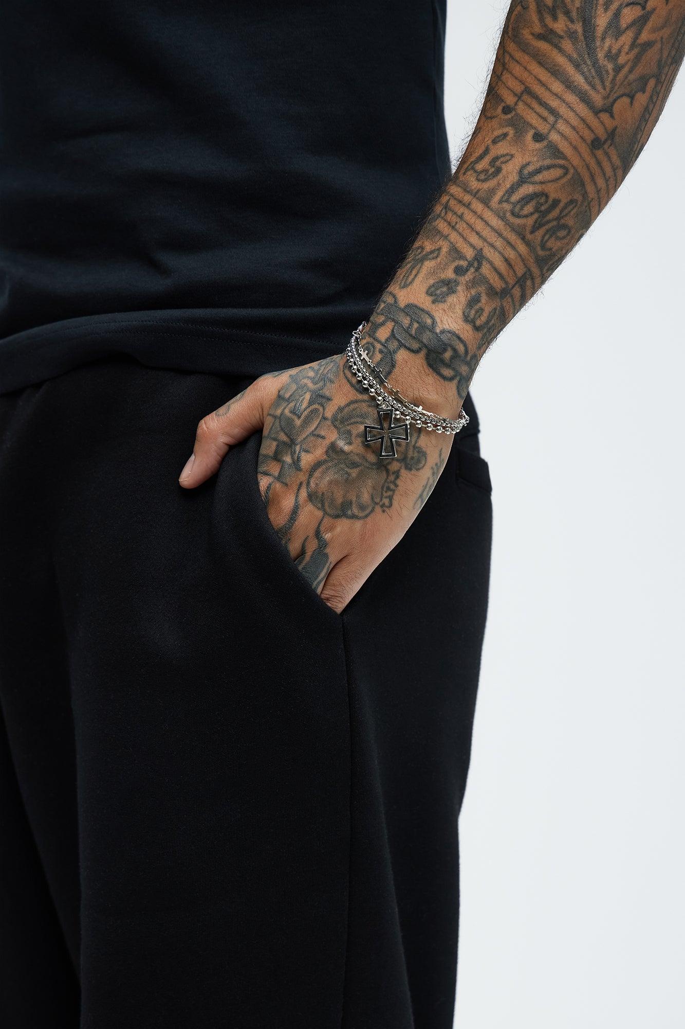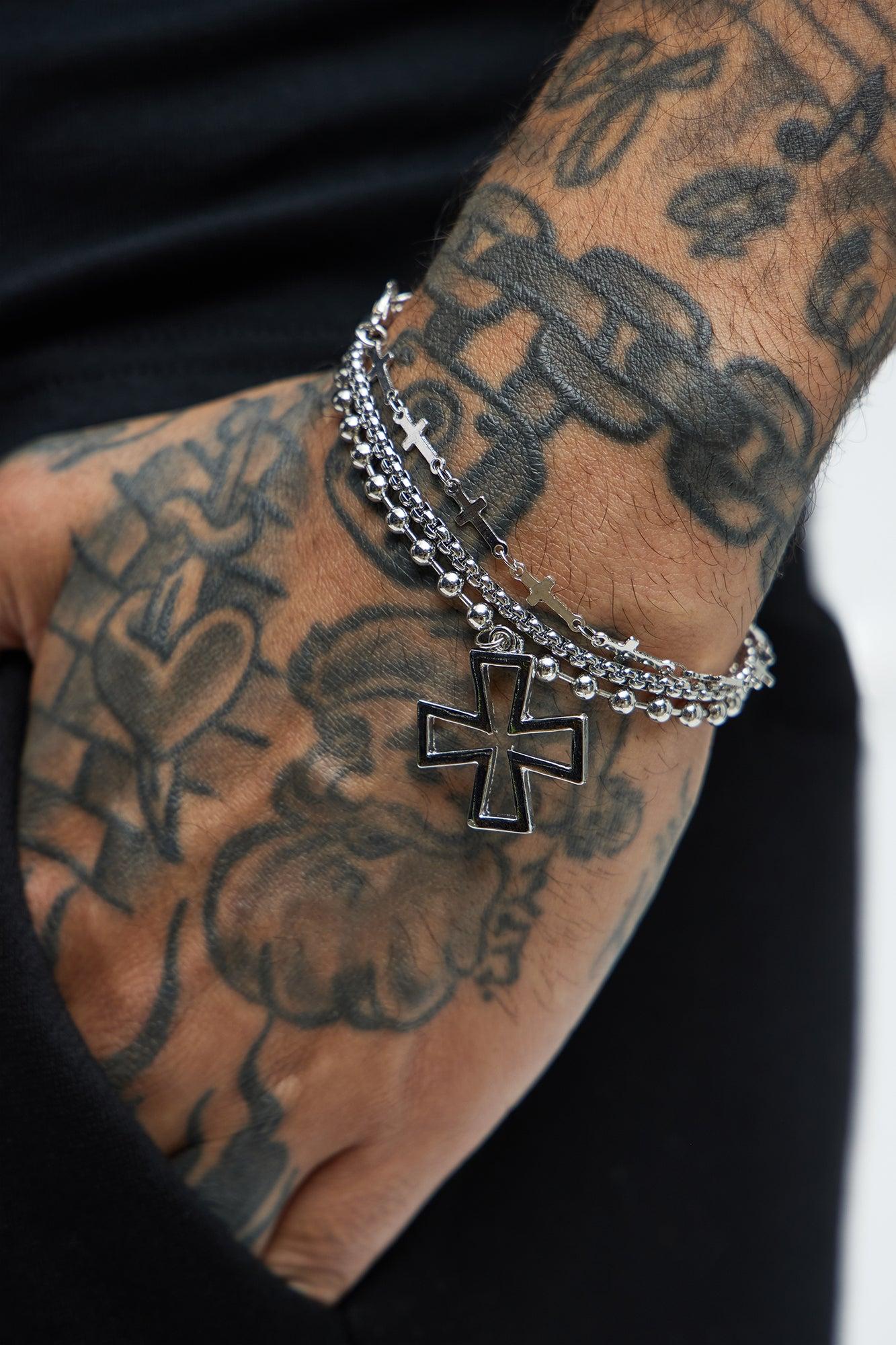 Orchid Cross Beaded Bracelet set - Silver