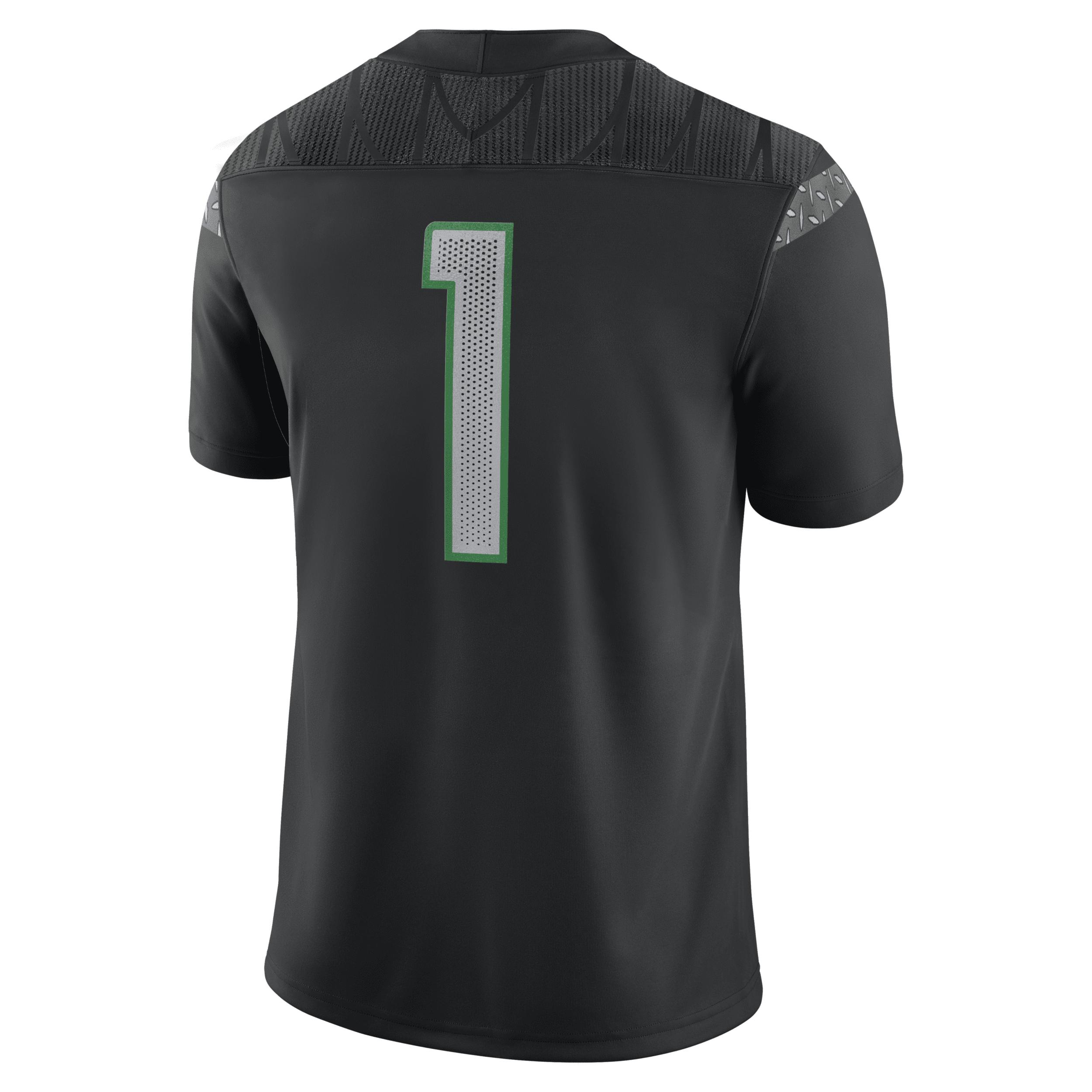Inspired by the on-field uniforms of your favorite collegiate squad, this Oregon Ducks Jersey delivers an authentic touch with official team details. Sweat-wicking technology and lightweight fabric help provide consistent comfort on game day. Benefits:Nike Dri-FIT technology moves sweat away from your skin for quicker evaporation, helping you stay dry and comfortable. Double pique body fabric helps keep you cool and comfortable. Screen-printed name and number offer lightweight durability. [] Product Details:Standard fit for a relaxed, easy feel. Embroidered team logo at V-neck. Stitched-down twill woven jock tag. 100% recycled polyester. Machine wash. Imported. Style: CLEVGRJNC2FORE; Color: Black; Size: XL; Gender: Male; Age Group: Adult | Oregon Ducks Men's Nike Dri-FIT College Game Jersey in Black, Size: XL | CLEVGRJNC2FORE-ORE