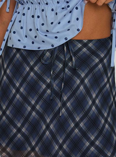 Check mid-rise mini skirt Tie fastening, invisible zip fastening at side Non-stretch material, fully lined 100% polyester Cold gentle machine wash