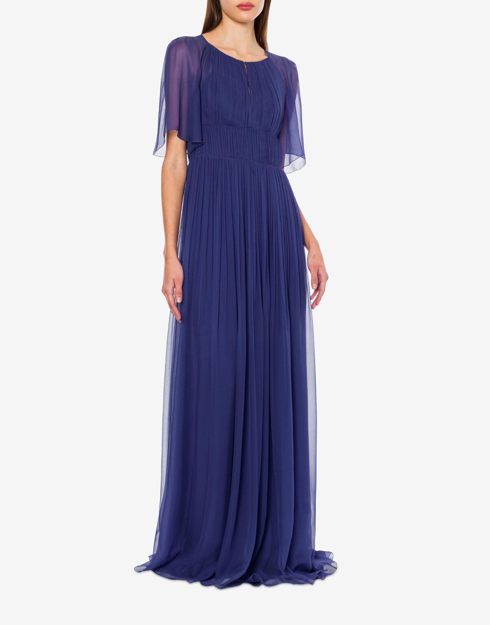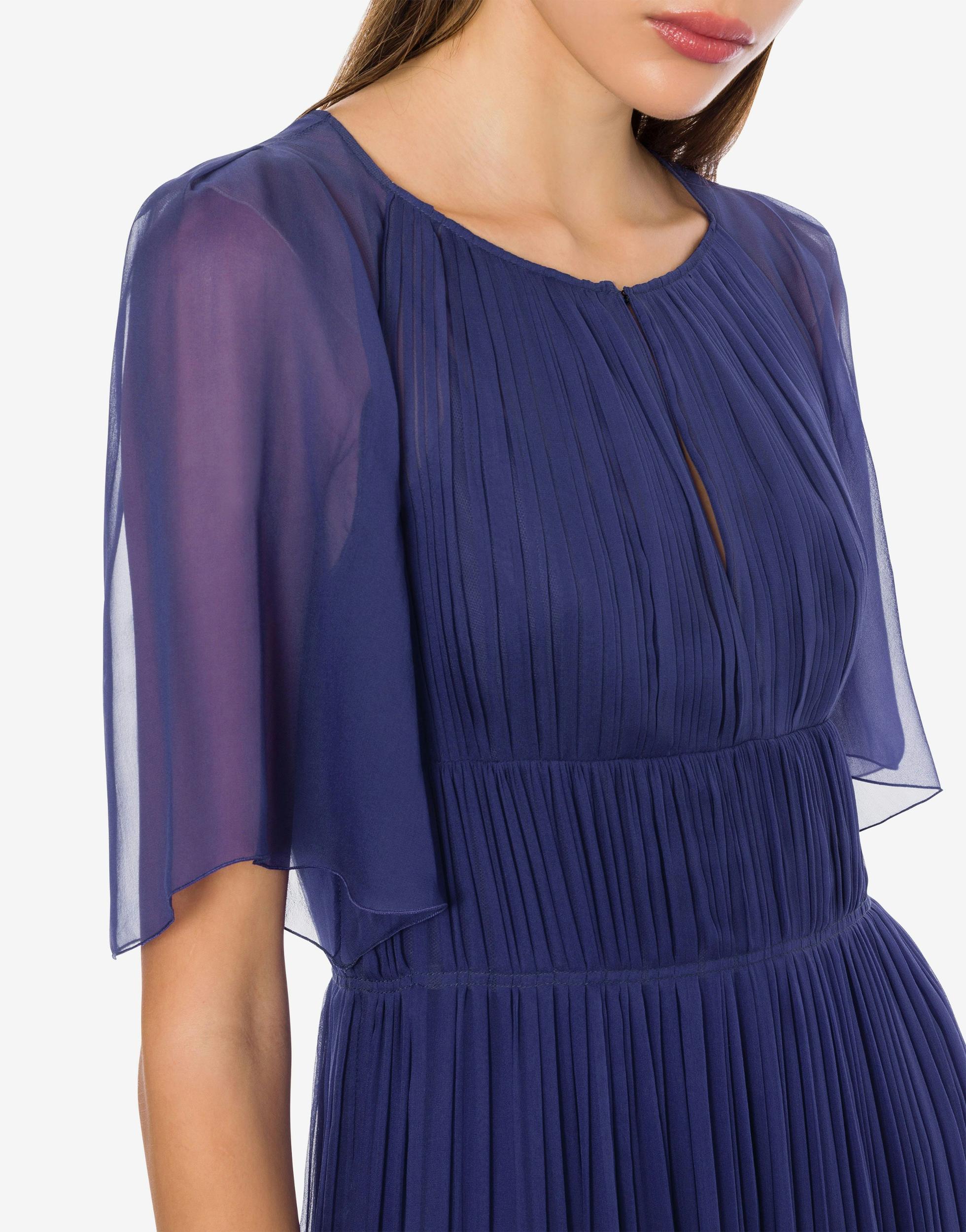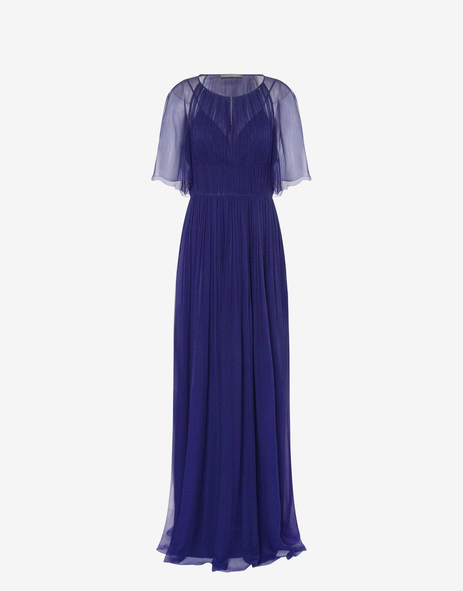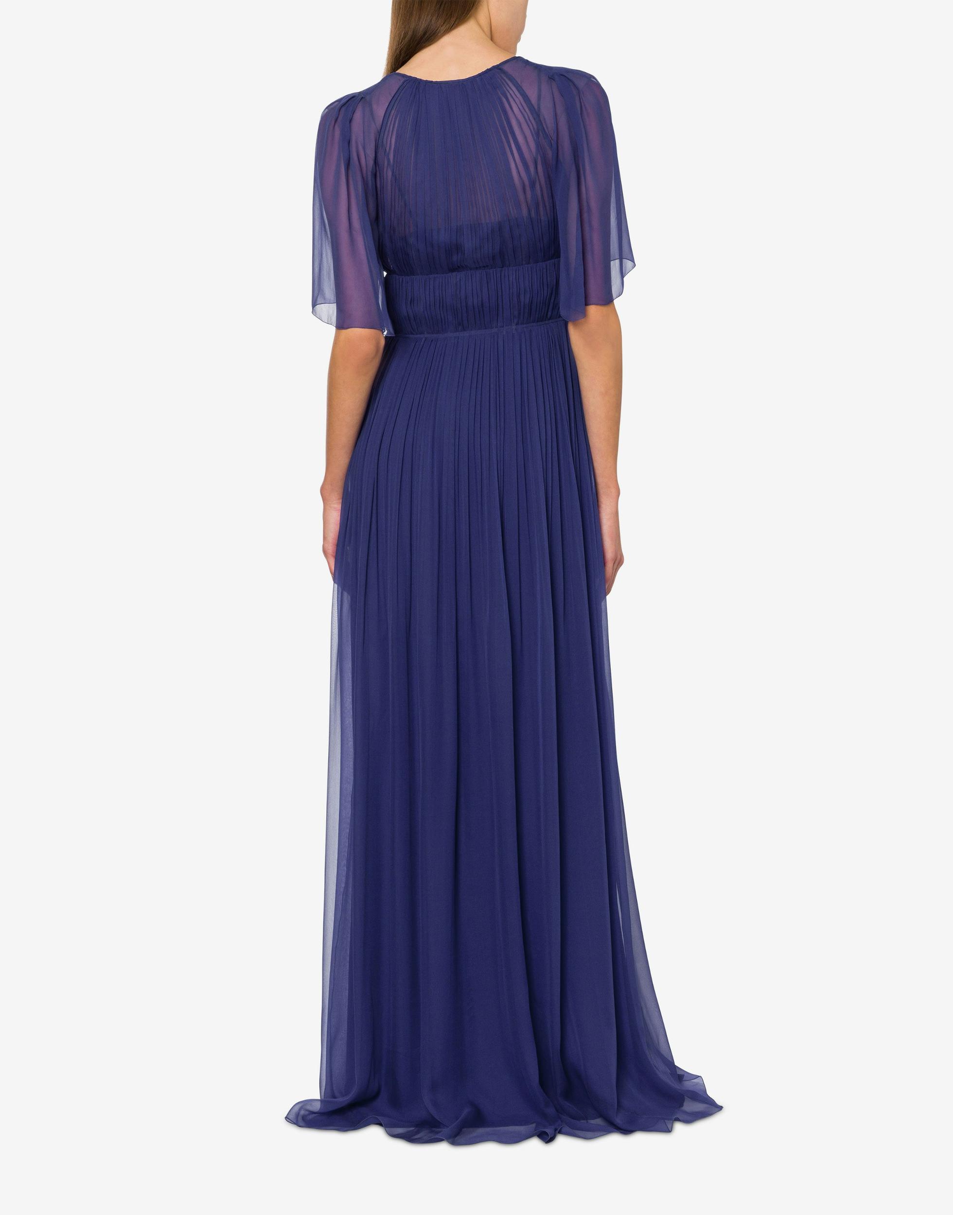 Stretch cady suit with bodice design inspired by a double-breasted men's waistcoat and loose-fitting trousers.