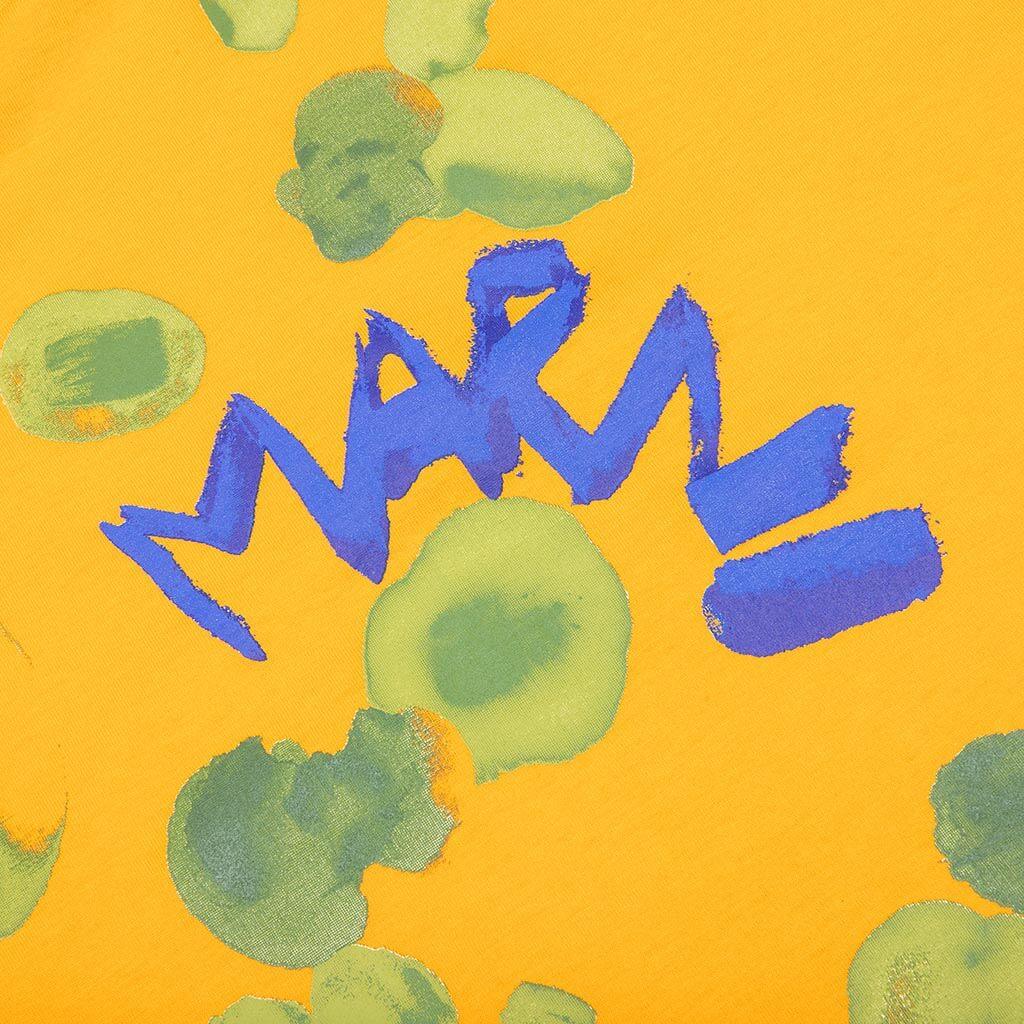 The Marni T-Shirt makes an impression with its bio cotton jersey construction. The design features a ribbed neckline, while the printed Marni logo stripes at the front finish the look. 100% cotton Ribbed neckline Screen-printed graphic Style No: HUMU0223PQ USCW18 DFR31