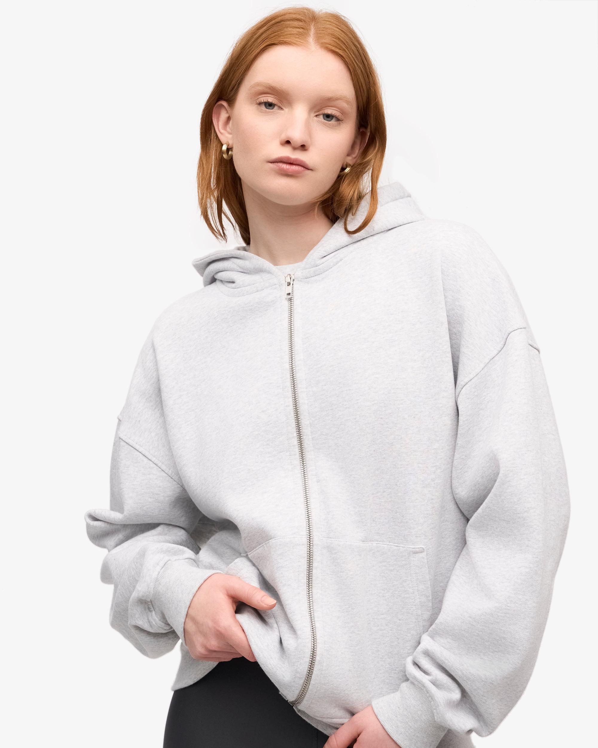 Organic Oversized Zip Hood - Snow Melange