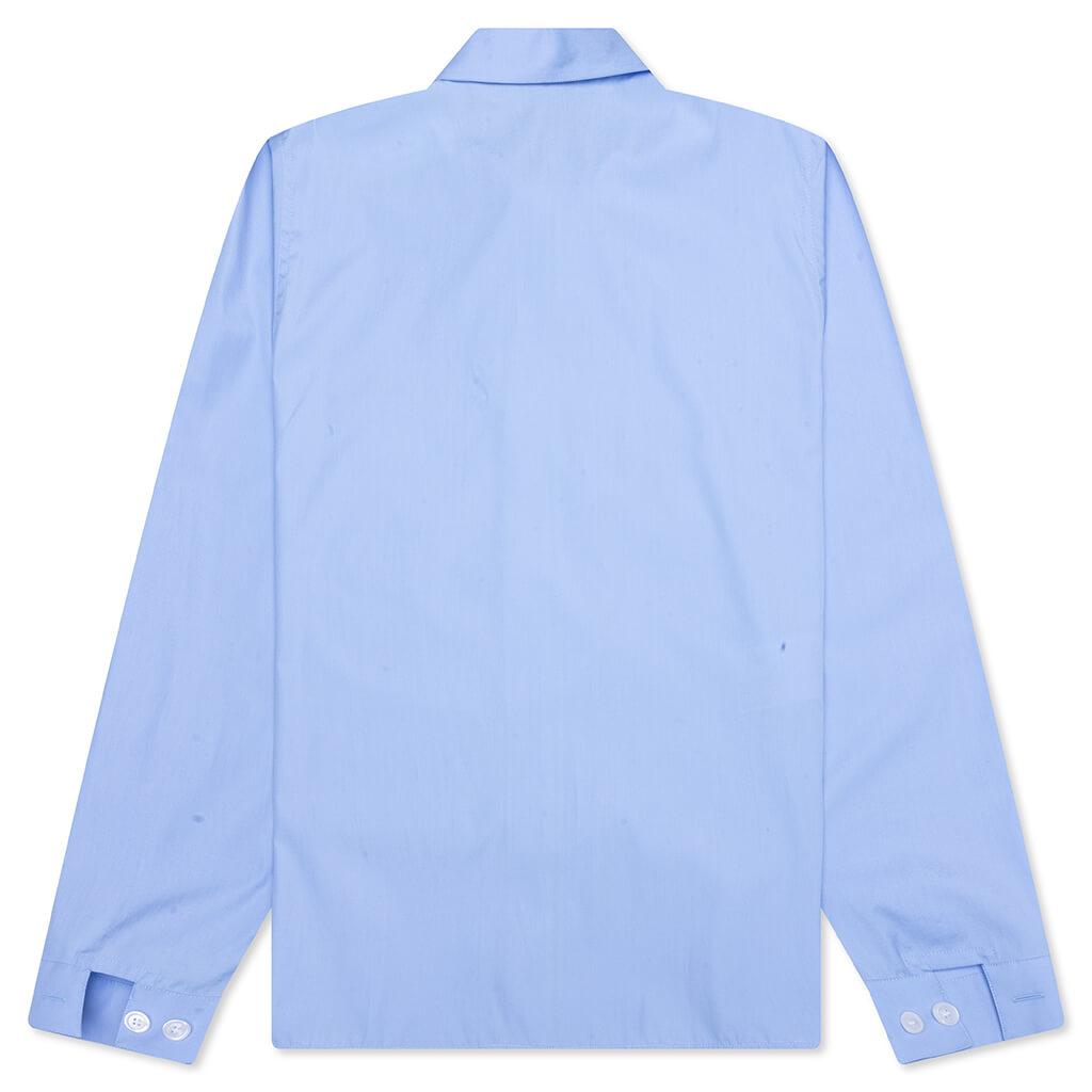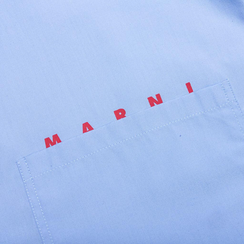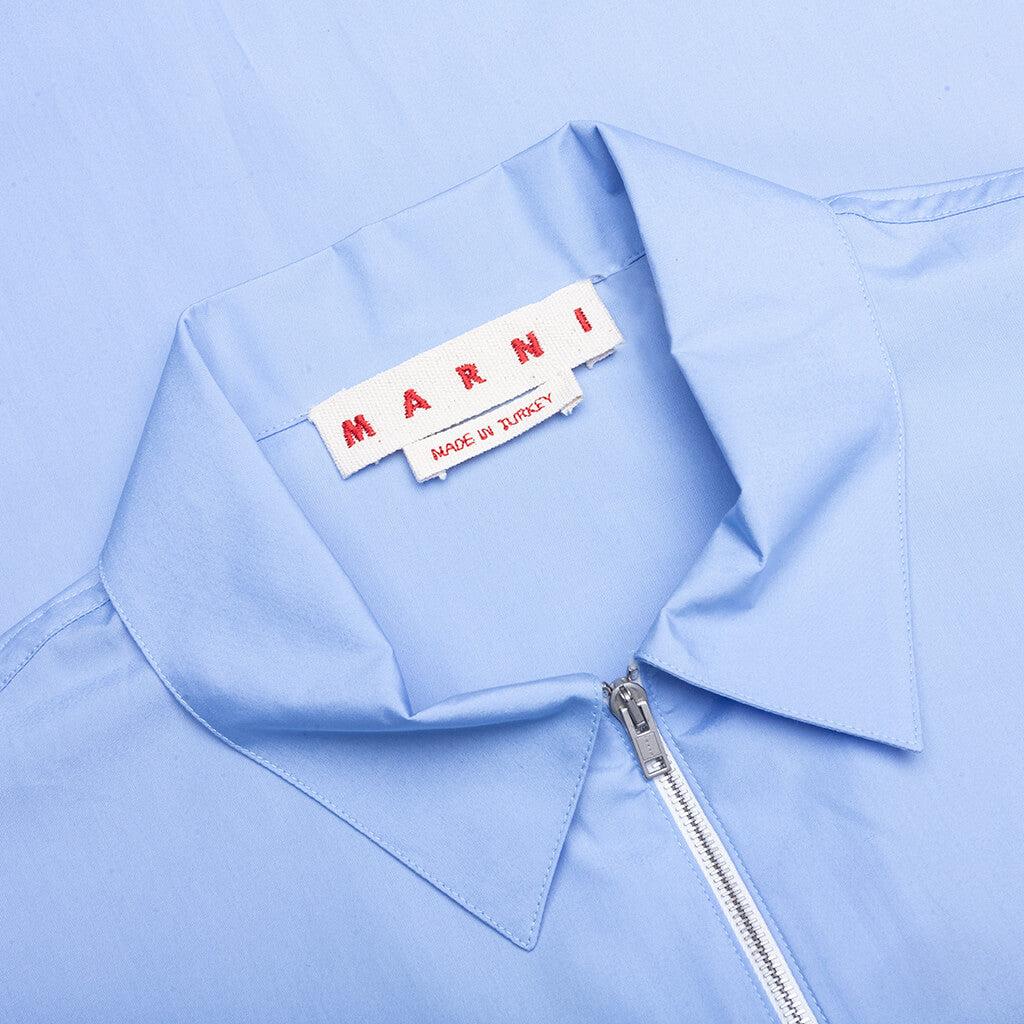 The Marni Organic Poplin Zip Shirt With Hidden Logo in iris blue is a modern take on a classic piece. Made from cotton, it offers a soft and breathable fit. The spread collar and zip closure provide a contemporary twist, while the two chest patch pockets offer practical storage. The logo print at the chest adds a signature detail, and the long sleeves and relaxed fit ensure comfort and easy wear. This shirt effortlessly blends style and function. 100% Cotton Spread collar Zip closure Two chest patch pockets Logo print at chest Long sleeves Relaxed fit Style No: CUMU0297P0 USCT88 L2B50