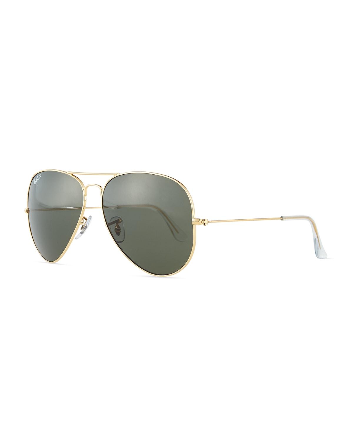 These timeless Ray-Ban aviator sunglasses feature cool tinted lenses. 62mm lens width; 14mm bridge width; 140mm temple length 100% UV protection Metal Imported. Soft Accessories - Men Sunglasses > Ray-ban > Saks Fifth Avenue > Barneys. Ray-Ban. Color: Gold.
