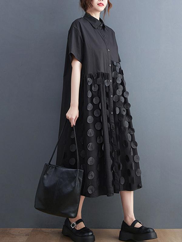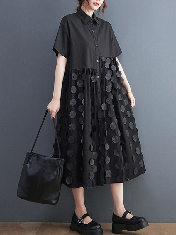 SkuCY-!103641Material>80%Cotton StyleLoose , Half Sleeves FeatureButtoned , Polka-dot , Split-joint , Solid Color NecklineLapel Collar OccasionCasual , Artistic Retro , Original Creation SeasonsSpring , Summer TypeMidi Dresses ColorBLACKSizeOne_size Please consult the size chart we provide for this item's measurements to help you decide which size to buy.Please note: There may be 1-3cm differ due to manual measurement.CMINCHBustShoulderSleeveLengthOne_size1205220112