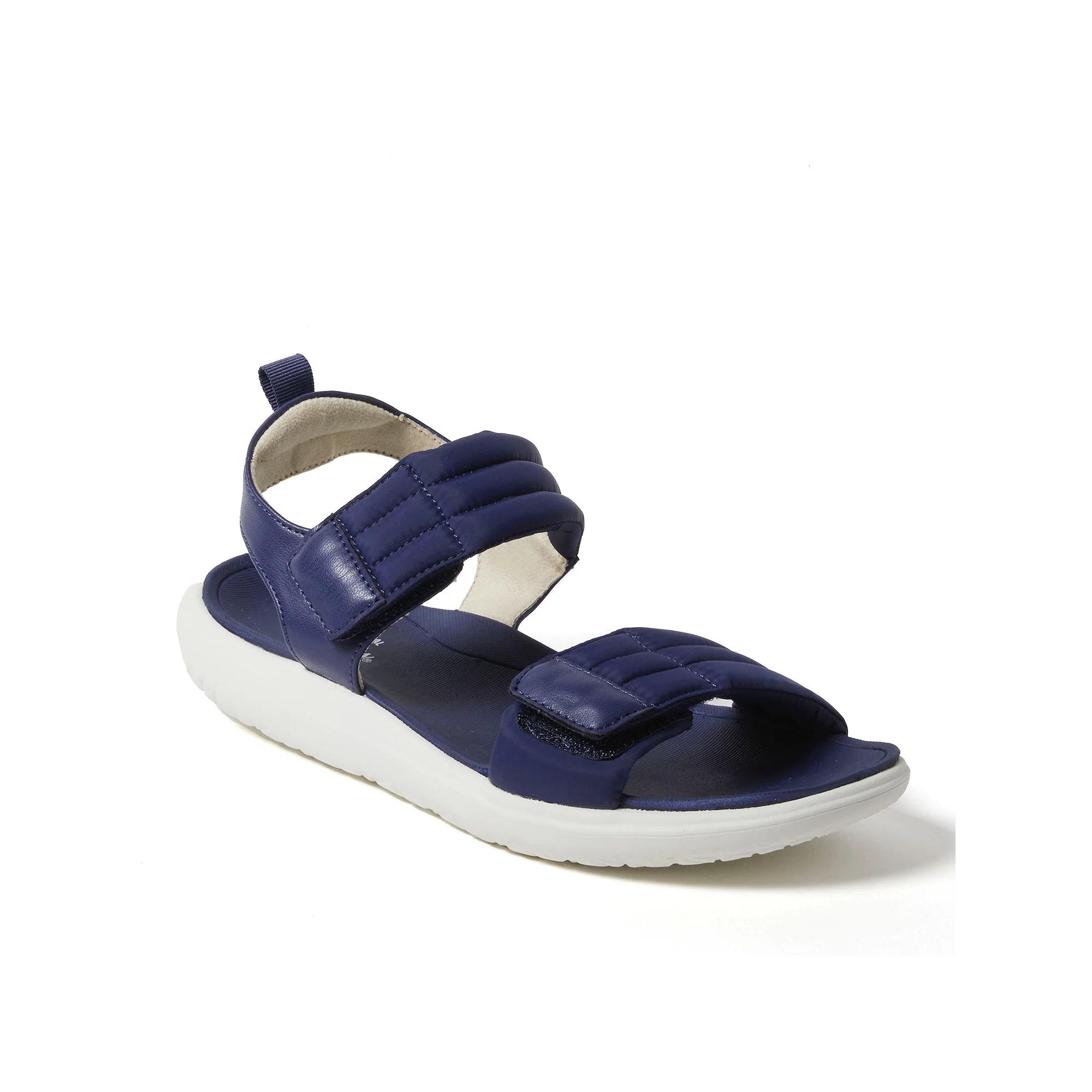 Step into comfort with the Dearfoams Thea Original Comfort women's strap sandals.Click this FOOTWEAR GUIDE to find the perfect fit and more!Step into comfort with the Dearfoams Thea Original Comfort women's strap sandals. Click this FOOTWEAR GUIDE to find the perfect fit and more!FEATURES Extra-lightweight construction makes long walks feel like a breeze Treat your feet to a break on even the busiest of days with an extra touch of comfy arch support Hook-and-loop tape straps for an adjustable fit Convenient, easy-clean, machine washable designDETAILS Nylon upper Polyester lining EVA outsole Round toe Slip-on EVA footbed Machine wash Imported Size: 6. Color: Navy. Gender: female. Age Group: adult.