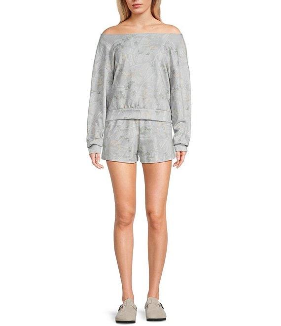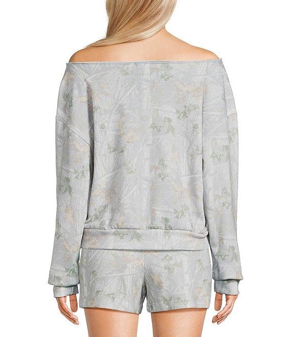 Originality Camo Print Off The Shoulder Long Sleeve Coordinating Cropped Sweatshirt