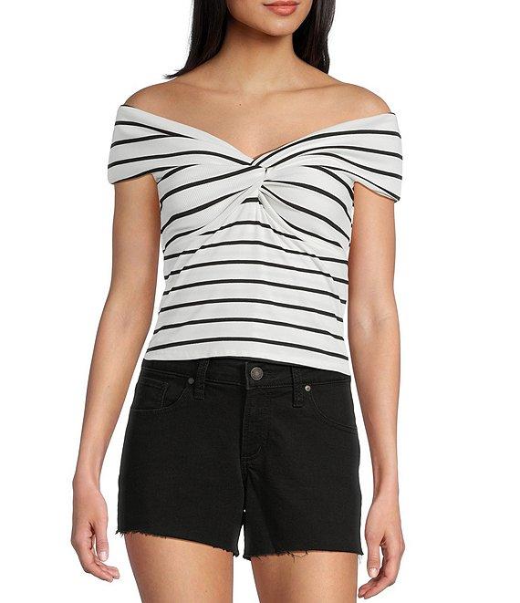 Originality Off-The-Shoulder Striped Twist Front Top