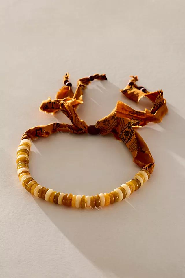 This versatile choker is free-spirited in every way, featuring semi-precious stones beaded onto a bandana for the coolest touch to any ‘fit. * Adjustable bead closure * Split, frayed ends
