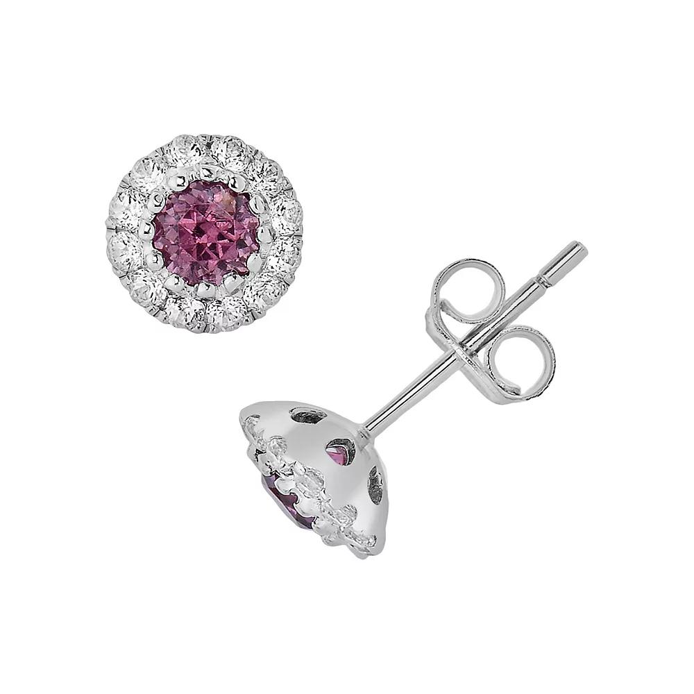 Genuine rhodolite garnet stones surrounded by genuine white topaz stones make these round frame studs shine with amazing style.Earring Details: Diameter: 0.27 in. Backings: post Metal: rhodium-plated sterling silver Model no. JE2944RH-SSStone Details: Stone type: genuine rhodolite garnet, genuine white topaz Cut: round Setting: prong, buttercup Gemstones may have been treated to enhance their appearance. Special care may be required. Please visit our Gemstone Treatment & Special Care Guide for more information. Size: One Size. Gender: female. Age Group: adult.