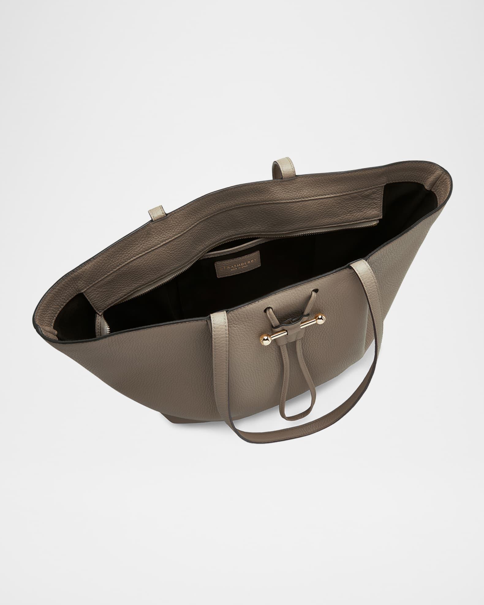 STRATHBERRY "Osette" shopper tote bag in leather Shoulder straps, 25.2"L x 0.6"W Zip top closure Exterior, drawstring meta bar hardware Interior, one slip pocket Lining: Polyurethane Approx. 11.8"H x 18.9"W x 6.3"D Item Weight (Lbs.): 1.2 Made in Spain
