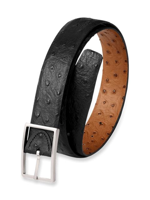 Ostrich Embossed Reversible Belt - Black/tan