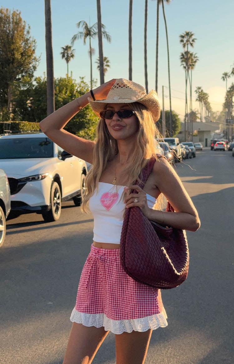 Red Gingham Mini SkirtHow to style:Our Red Gingham Mini Skirt is the ideal choice for your summer day plans! The lace detail hem and tie waist design add a charming touch, while the low-rise, mini length keeps it playful and chic. Pair with a simple tank or tube top, sandals, and dainty gold jewellery for an effortlessly stylish look!Features: Red gingham fabric Mid-weight fabrication Elasticated top opening with functioning tie Fully lined Low rise Mini length Perfect for festivals or brunch