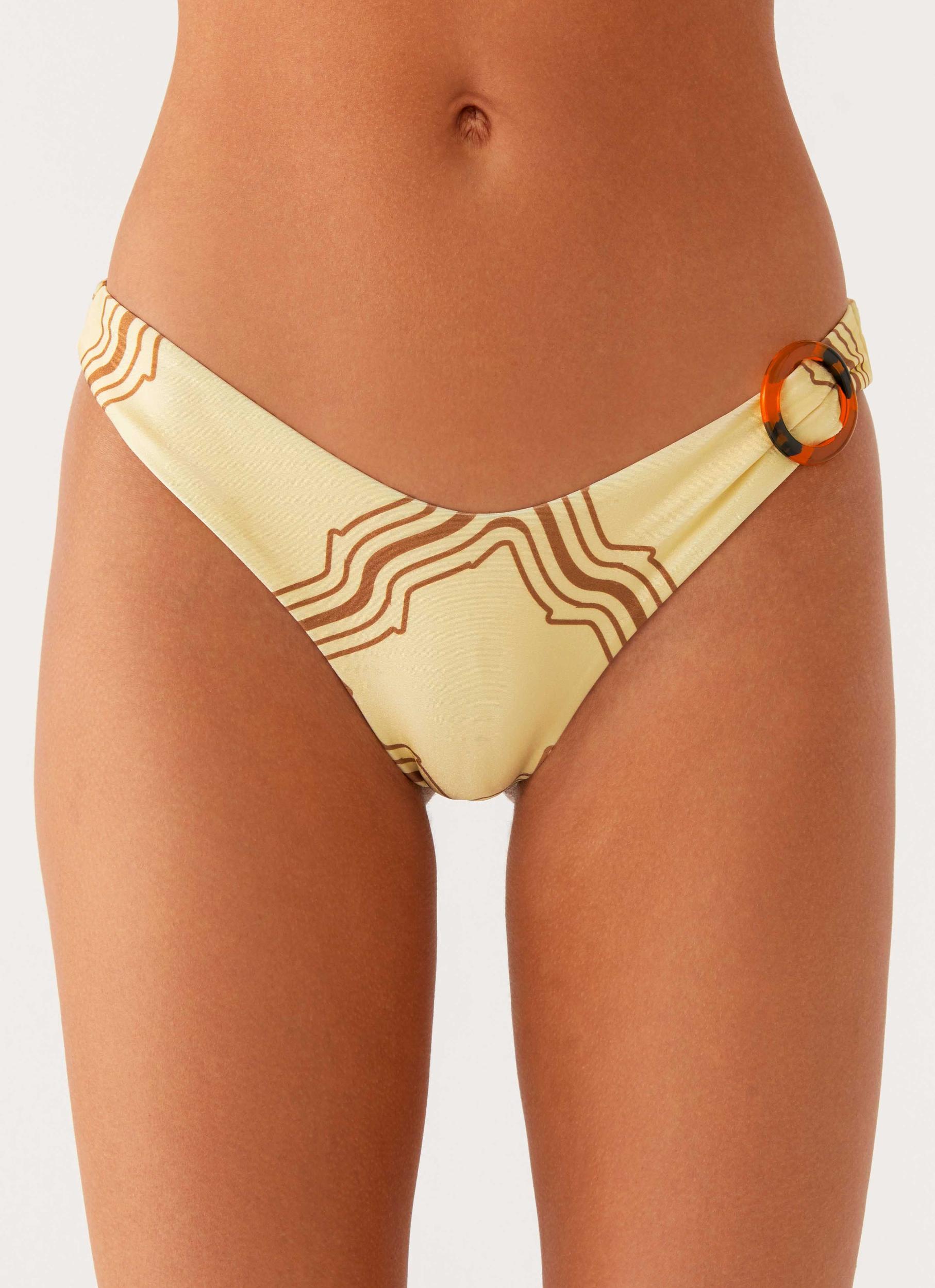 Peppermayo Exclusive The Oudre Bikini Bottoms are made for sun-drenched days that glide into golden hour. Designed with a low-rise, mini-length silhouette, these bottoms feature side ring detail and an elasticated waistband for a flattering fit. Self-lined and crafted in stretch swim material, they’re perfect for lounging or making a splash. - Low rise- Mini length- Ring detail- Stretch swim material- Self-lined- Elasticated waistband- Fabric: 80% Nylon, 20% Spandex Size AU 8 / US 4 garment measurements:Waist: 70 cm / 27.6 inFront rise: 20 cm / 7.9 inBack rise: 19 cm / 7.5 in Grace is 173cm and wears size AU 6 / size US 2