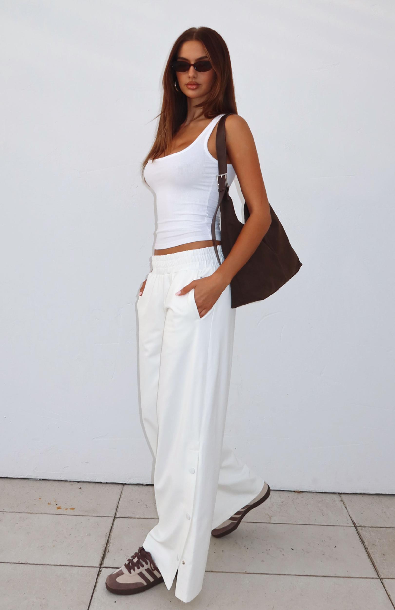 Introducing your newest capsule wardrobe item, the Our Bridges Burned Wide Leg Pants in Cream! Features thick elasticated waistband, side pockets and button detailing down side which can be styled opened mid leg down. Finish off the look effortlessly with a basic tank, sandal and sunnies for the perfect causal sunday fit! 60.3% Rayon 34.7% Nylon 5% Elastane Mik is 171cm & wears a S Brittany is 175cm & wears an XS
